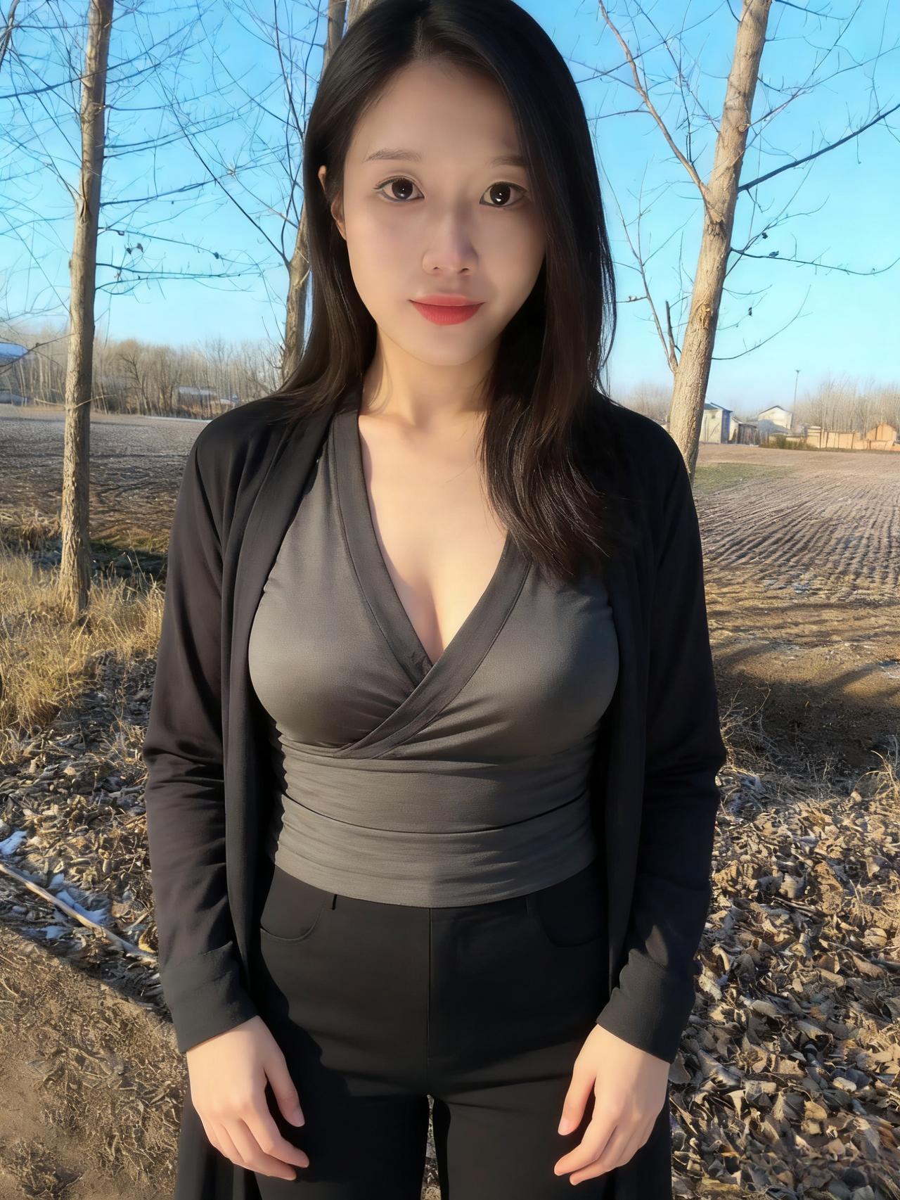 疏林晴日暖尘沙,墨袂轻扬映晓霞。 不借繁花添秀色,自将清艳寄天涯。