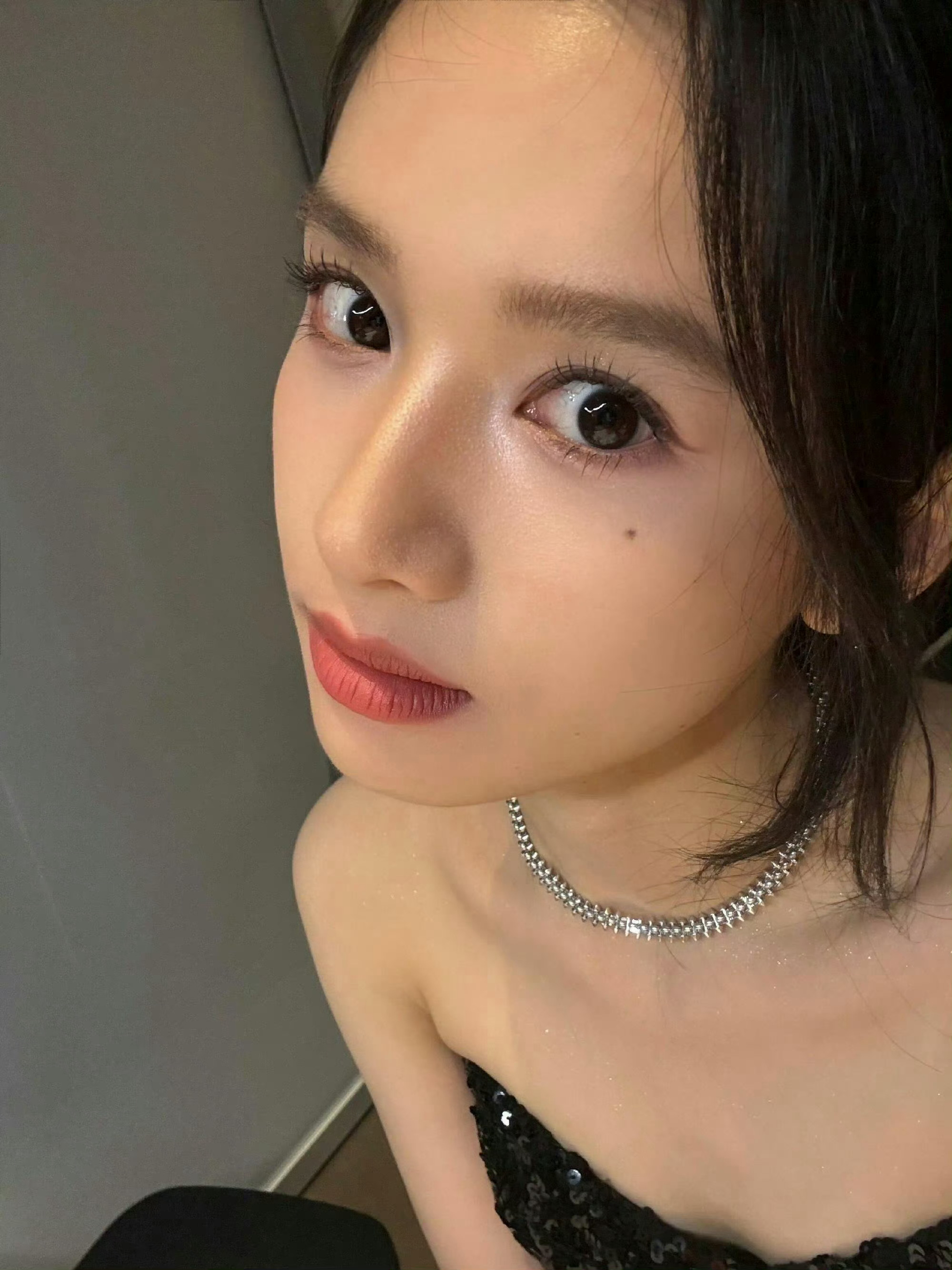 刘亦菲喝醉酒微醺的状态被拍到,脸上已经泛起了红晕,被拍到后眼神微怒