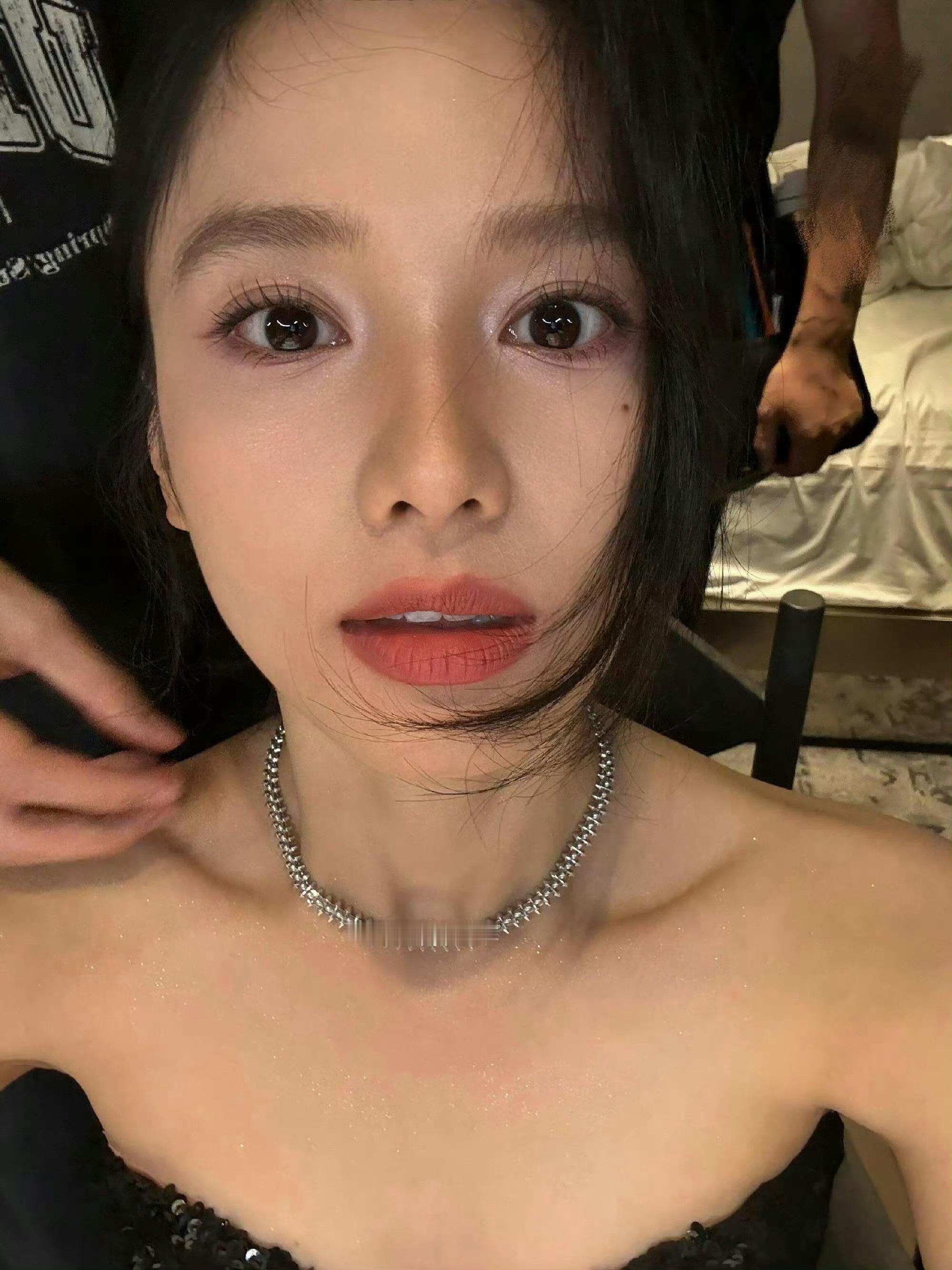 张天爱跟素人合影,胯真的好宽,大宅院似的