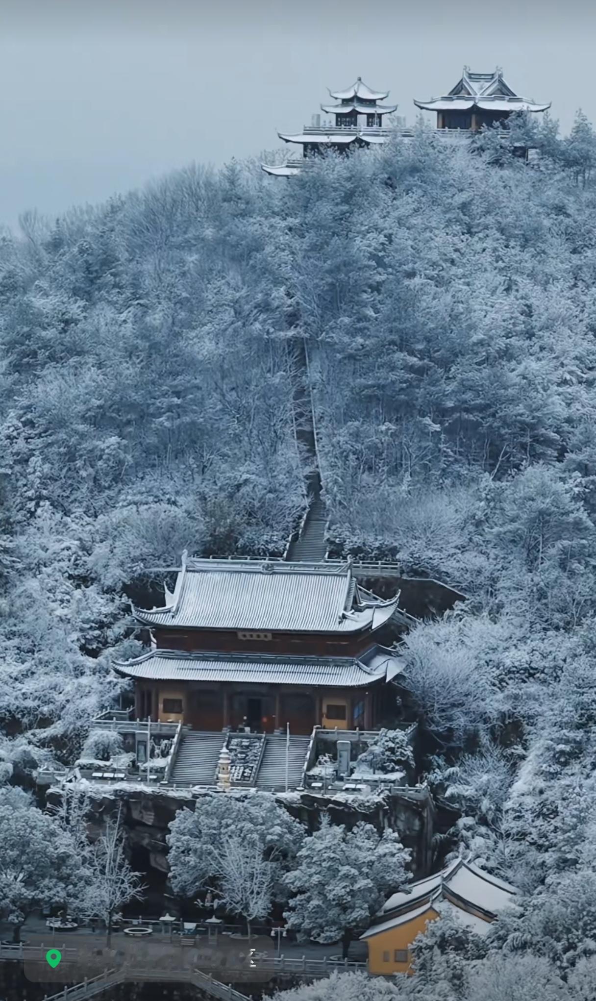 苏州穹窿山,海拔高度只有341.7米,但一下雪,就有了道教名山的感觉。 它是国家AAAAA级旅游景区,主峰“箬帽峰”有“吴中之巅”之称。山因“四周隆起,中间下垂”形似穹窿得名,历史上还被叫做穷隆山。 2月6日苏州下雪,第二天穹窿山主峰箬帽峰就有了4至5公分的积雪。雪后的穹窿山,苍松翠竹被白雪覆盖,山色秀美如仙境,本就人文丰富的它,此刻更添了几分神秘与宁静,说它是苏州最美风景之一也不为过。