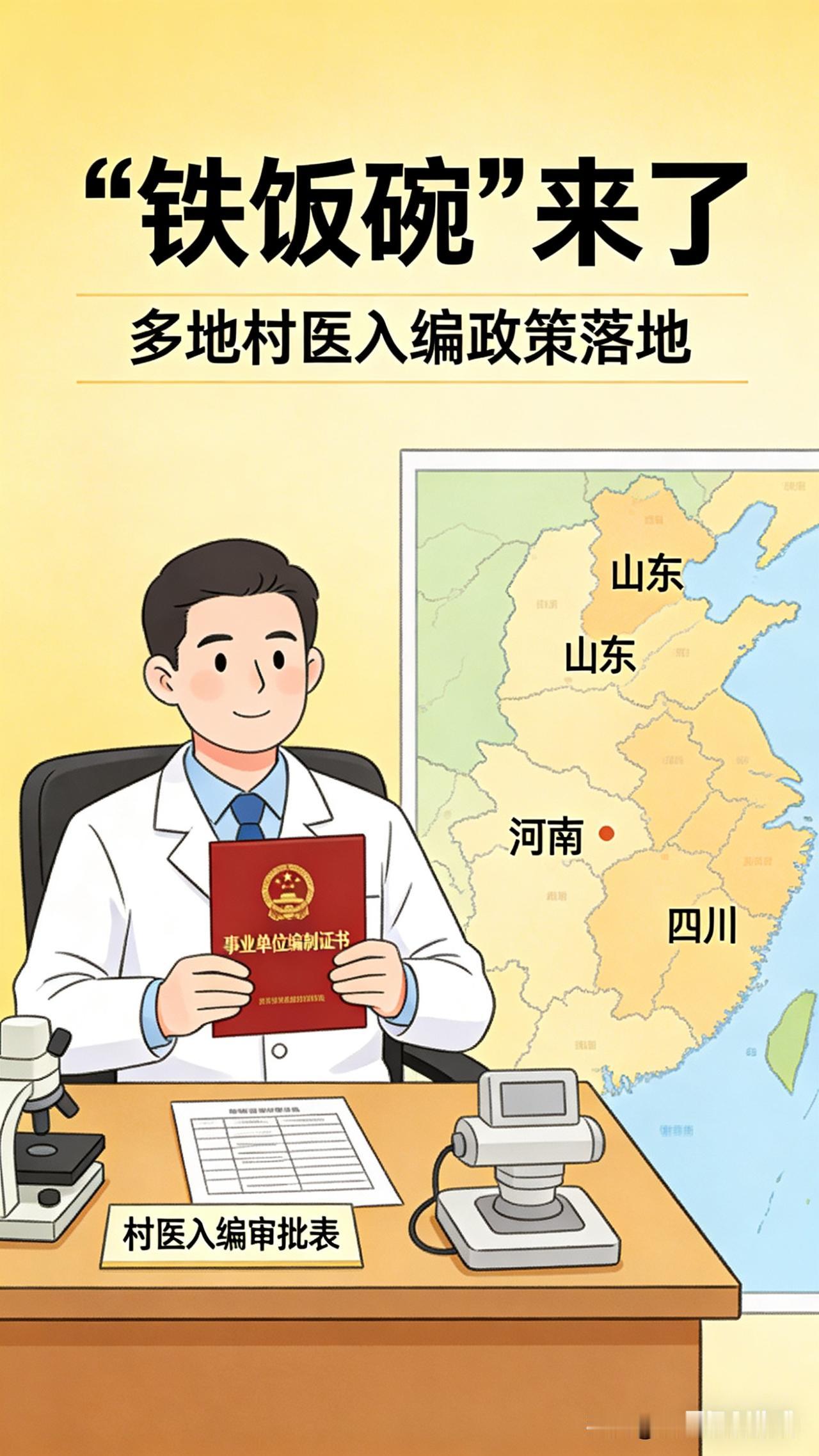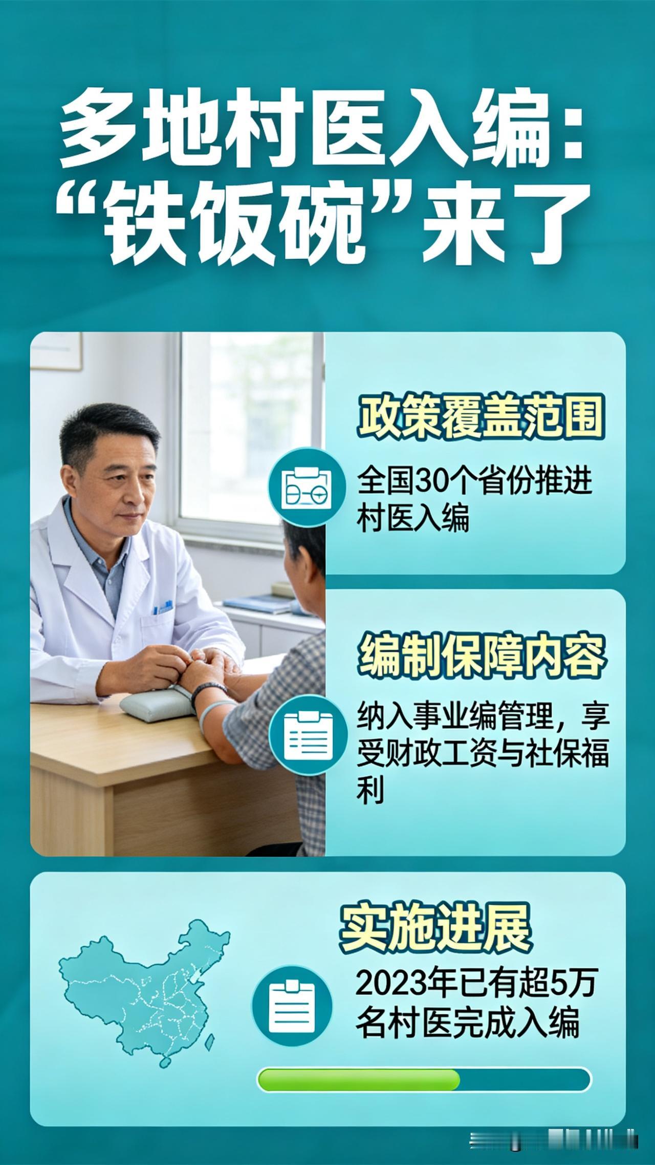 基于多地村医入编政策的落地实践,我将从政策红利、现实差距、深层挑战与未来展望四个维度展开,既呈现“铁饭碗”带来的希望,也客观剖析改革中的待解难题,让文章兼具深度与温度。 “铁饭碗”照进乡野:村医入编潮下的坚守与期盼 2026年伊始,甘肃、安徽、四川等多地密集出台的乡村医生转编政策,如一股暖流涌入乡野。“入编年挣6万”“五险一金全配齐”的承诺,让这个承担着农村医疗“最后一公里”重任的群体,终于迎来了身份蜕变的曙光。从“半农半医”的个体从业者到纳入事业编制的“单位人”,这场跨越全国的基层医疗改革,不仅改写着百万村医的职业命运,更在重塑乡村健康保障的“网底”。 政策春风里,村医的“编制梦”正在照进现实。甘肃省明确连续执业10年且持有执业医师资格的村医可直接入编,安徽通过“大学生乡村医生专项计划”实现“带编入村”,山东单县推行“县招镇聘村用”模式,让新入职大学生村医月均到手收入达6000-7000元。26岁的安徽村医张中正入编后,月收入从2000元补贴跃升至5000元,还能免费到县医院进修,“不用再为生计发愁,能专心看病了”的感慨,道出了受益群体的心声。更值得关注的是,多地打破了待遇保障的“二元鸿沟”:河北明确村医收入不低于乡镇卫生院同类在编人员,重庆对未入编村医实行参照事业编制薪酬标准,福建三明甚至推出10万年薪制,让村医的职业尊严感显著提升。 然而,政策红利的背后,仍存在着不容忽视的现实差距。全国乡村医生总数超过130万,但截至2024年10月,大学生乡村医生专项计划录用人数不足7500人,入编比例尚不足1%。陕西部分乡镇卫生院仅分配2-3个村医编制,“几十人抢一个名额”成为常态。更让老村医们无奈的是年龄与资质门槛:多数地区要求35岁以下、具备执业(助理)医师资格,而全国半数以上村医年龄超过45岁,不少人仅有乡村医生证,连考试资格都不具备。58岁的贵州村医陈守义执业35年,月收入最高不足3000元,只能缴纳农村养老保险,退休后每月仅领几百元,与入编村医4500元以上的月薪、1500元左右的社保公积金形成天壤之别。 村医入编改革的深层意义,远不止于待遇提升,更在于破解基层医疗“引不进、留不住”的长期困境。过去8年,村医数量以每年3-5万人的速度递减,30岁以下村医占比仅6.3%,人才断层危机日益严峻。而转编政策带来的不仅是稳定收入,更有清晰的职业发展通道:广西武宣县入编村医服务满5年可调入医共体分院,中级职称者能进入总院;多地将进修表现与职称晋升挂钩,让村医不再是“一辈子守在村”。山东单县的实践印证了改革成效:59名大学生村医入职后,全县村医平均年龄降低、学历提升,基层诊疗量占比达66.3%,群众就医满意度升至95%,2024年节约医保资金490万元,实现了“村医稳、群众便、医保省”的多赢。 但要让“铁饭碗”真正筑牢乡村医疗防线,仍需跨越三重障碍。其一,需扩大编制供给与政策包容性,对连续执业多年的老村医建立过渡机制,如江西的专项培训考核、湖南的等级评定入编,避免“一刀切”清退;其二,要完善待遇动态增长机制,将村医收入与当地人均可支配收入、县级医院同类医师待遇挂钩,落实工龄补贴、偏远地区补助等倾斜政策;其三,需强化配套支撑,将村卫生室运行经费、设备更新、继续教育等纳入财政预算,让村医“有钱挣、有奔头、有能力”。 乡村医生是亿万农村居民的健康“守门人”,他们24小时待命、半夜出诊,承担着四五十项医疗与公卫职责,撑起了基层医疗的半壁江山。2026年的村医入编潮,是对这份坚守的认可与回馈,更是健康中国战略向基层延伸的关键一步。当编制保障覆盖更多乡野医者,当每一位村医都能获得体面收入、尊严执业与无忧养老,乡村医疗的“网底”必将更加坚实,而亿万农村群众的健康福祉,也将在这份“稳稳的幸福”中愈发绵长。 这篇文章既呈现了政策落地的鲜活案例,也直面了改革中的现实问题。若你想重点突出某类群体(如大学生村医、老村医),或补充特定地区的政策细节、增加数据支撑,欢迎告诉我,我可进一步优化内容结构或深化某部分论述。