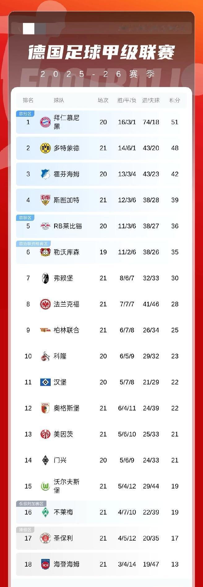 德甲积分榜:多特积48分落后榜首拜仁3分,拜仁本轮对阵霍芬海姆 02月08日 德甲第21轮 多特2-1绝杀狼堡 积分榜上:多特先赛积48分落后榜首拜仁3分,拜仁本轮主场迎战霍芬海姆