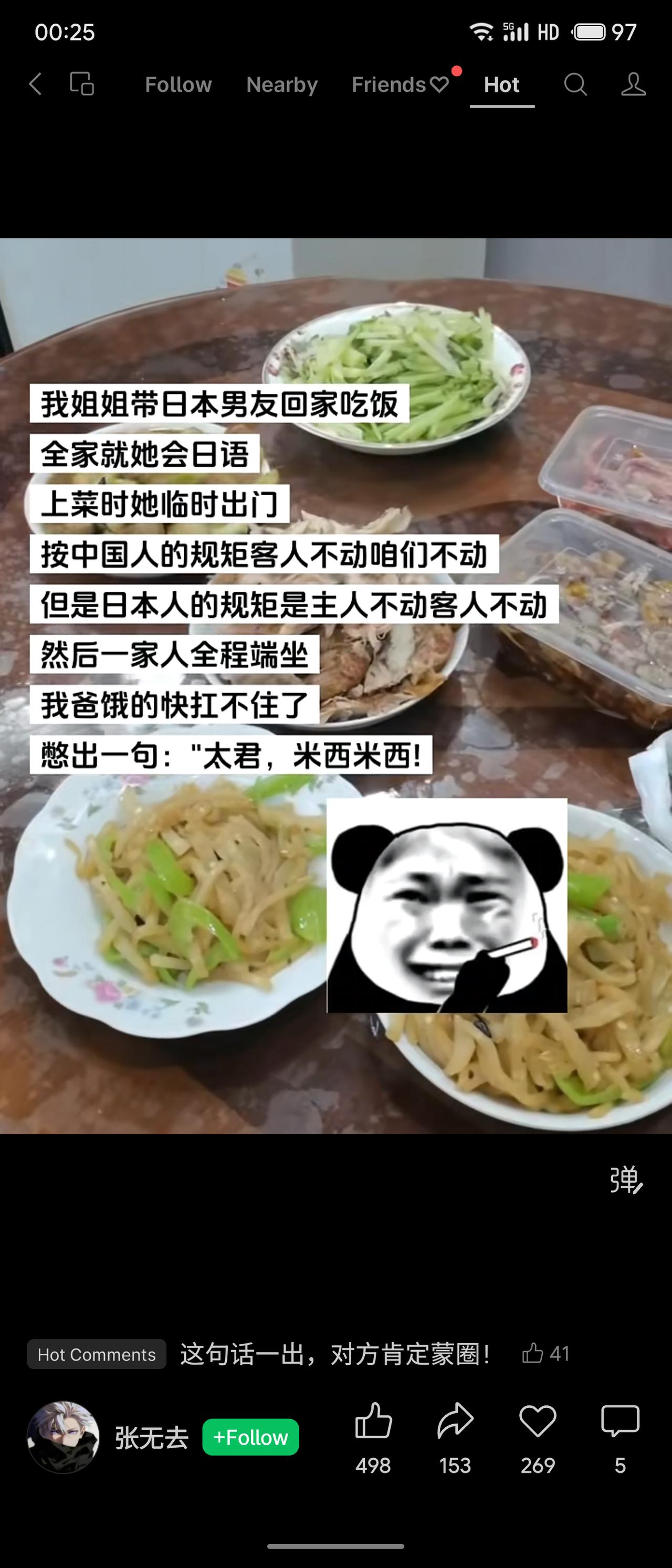 姐姐带日本男友回家聚餐,因语言不通及中日餐桌礼仪差异(主客互等对方先动筷),全家僵坐。父亲饥饿难耐,情急下脱口而出“太君,米西米西”,制造出跨文化尴尬又搞笑的场面。