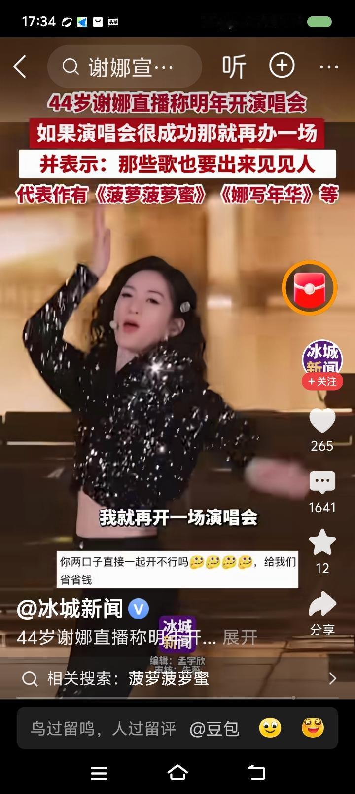 谢娜要开演唱会?—— 据报道,谢娜说:“我答应你们,明年开一场演唱会;如果成功,我就再开一场演唱会;如果再开了成功,我就再开一场演唱会。” 点评: 本来想评论她干这事的利弊,放弃了。想起岳云鹏开演唱会,很多人反对。我也提出意见。但郭老师说了:“让他开,他有这个权利,成不成是他的事。” 你说,我们还说什么? 你要是发射火箭,那得好好研究。一个明星开演唱会,尤其是非职业歌手,他需要研究么?好歹不会赔,大不了少赚一点。至于质量好坏,那……你太年轻。你认为粉丝去听歌去的?“尖叫声在哪里?” “呀——”