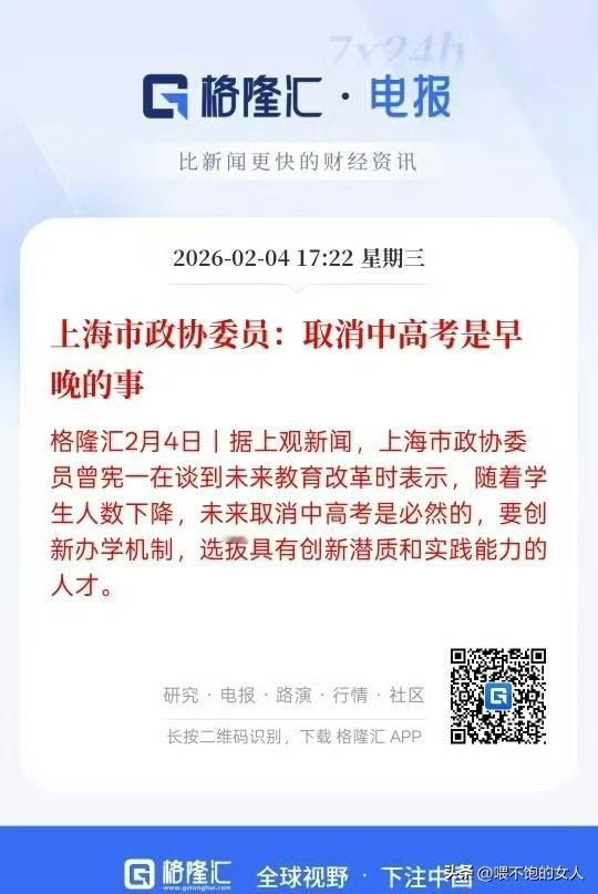 真的想不通,为什么那么多人反对上海市政协委员取消中高考的事。这不是一件大好事吗?现在好多本科生,研究生毕业了都找不到工作,取消了高考,就不用那么卷了,你有能力就继续自己学,你想学就去自己学,你没有这个想法和能力,你就自己去找工作,到社会这个大学校尽早去闯荡。。 取消了中考也好,你看看现在多少孩子为了中考加班加点的卷,有的都卷到楼上去了,给家庭带来了那么多伤痛。有的家庭从小学到初中到高中花了多少冤枉钱去补习卷那点分数,最后卷了一个啥?钱也花了,工作到时候还是没找到。 也不用担心什么富人权贵的孩子取消高考以后都上了名校,进了名校又怎么样?如果在名校里还是纨绔子弟不好好学,没有真本事,毕业之后拿到了高文凭,到了你的公司里,啥本事也没有,你会要吗?就是让他考编制,他都考不进去。[捂脸][捂脸][捂脸][捂脸][捂脸][捂脸]所以说还是取消了好。不尝试哪里知道?你先尝试个一两年看看。我看那些反对的人是思想固化了,老传统,没有想象力和创造力,只是当年通过高考尝到了一点甜头而已,现在已经不是以前了。。