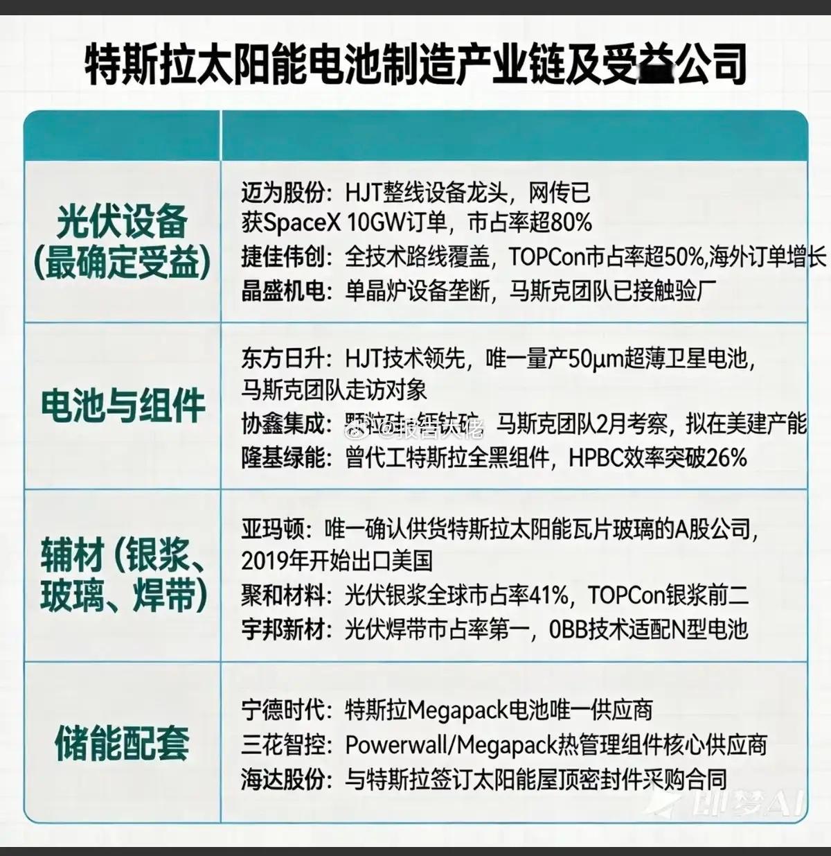 马斯克团队秘访中国光伏钙钛矿电池,计划投资建设太阳能电池。相关核心受益股: