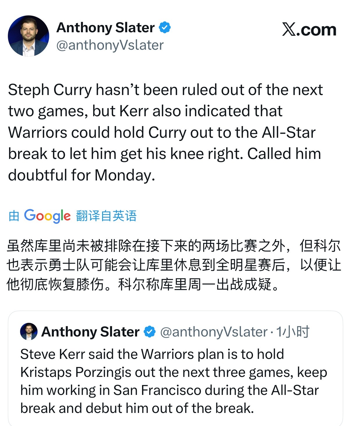 科尔表示想让库里全明星之后复出,计划让波神全明星周末之后完成勇士首秀库里波神或全明星后复出