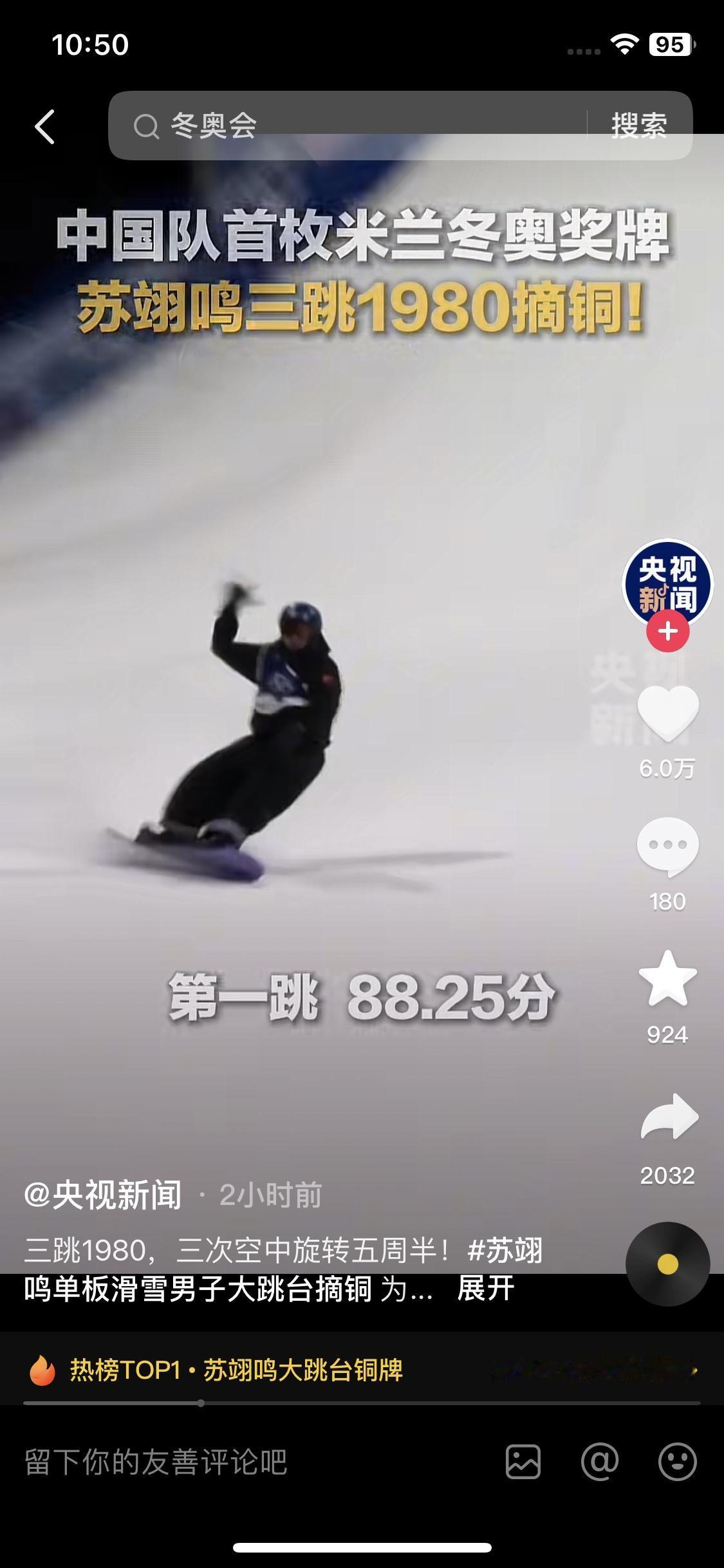 看到苏翊鸣获得铜牌, 我真的绷不住了! 不是遗憾他没能卫冕冠军,而是心疼他也只是21岁的少年啊! 米兰冬奥会单板滑雪男子大跳台决赛,12名选手同台竞技,苏翊鸣第一跳就亮出正脚内转1980的高难度,稳稳落地拿了88.25分暂列第二,开局特别顺。可第二跳冲反脚内转1980时没站稳,只拿到73.75分,排名一下就被追上来了。第三跳他压根没想着降难度求稳,还是冲1980,就是手轻轻碰了下雪,80.25分,最后总分168.50分摘铜。其实他第三跳只要拿74.75分就能稳守领奖台,可这孩子偏要拼,就想冲更好的名次,这股倔劲看着又佩服又心疼。 这四年的备战路,他走得一点都不顺。2024年脚踝扭伤,直接退了世界极限运动会,后来肩膀又受了伤,年底世界杯北京站连领奖台都没摸着,镜头里还拍到他偷偷擦眼泪。为了练1980的动作,他每天在雪道上重复上百次起跳落地,摔得浑身是淤青,教练劝他歇两天,他歇半天就又回到雪道上,2025年5月终于练出2160的超高难度,10月还解锁了全球首个背靠背1980,拿下吉尼斯纪录,每一个突破都是摔出来的。 就连这次冬奥的资格赛,他都走得惊险。第一跳没站稳直接摔了,只拿22分,排到24位,差点就被淘汰了,当时看比赛的人都捏了一把汗。可他一点没慌,第二跳稳稳完成1800,拿了87.75分,第三跳干脆直接冲1980,拿了85分,硬生生从倒数追到第四名晋级决赛,这份抗压能力,根本不像个21岁的孩子。 21岁的年纪,身边的同龄人大多还在校园里上课、和朋友出去玩,享受着轻松的青春,可苏翊鸣从17岁拿北京冬奥冠军开始,就扛起了中国单板滑雪的大旗。零下二十多度的雪场,他每天天不亮就开始训练,一练就是大半天,伤病疼了就揉一揉,从不说苦。卫冕的压力、伤病的折磨、外界的期待,全压在这个21岁少年的肩上,他却从没喊过一句累。 赛后采访的时候,他还笑着说自己算是赛场上“比较老”的运动员了,也坦然说判罚很公平,是自己没发挥到最好,全程没提一句自己的伤病,也没抱怨任何一次失误。镜头里他笑得一脸轻松,可谁都知道,拼完这三跳,他的身体肯定又在疼,他只是把所有的委屈和遗憾都藏在了笑容里,这份成熟,远远超出了他的年龄。 这枚铜牌的分量,一点都不比金牌轻。这是中国代表团本届冬奥会的首枚奖牌,而且这次决赛里,日本四名选手全部晋级,整个赛场的选手都在冲1980,项目难度比四年前北京冬奥高了不止一个档次。苏翊鸣三跳全选了1980的高难度,哪怕两次出现小失误,也从没想着降难度求稳,这份对极限的执着,比卫冕成功更让人动容。 21岁的苏翊鸣,用一枚铜牌让我们看到了运动员最珍贵的模样,他不是天生的强者,只是比别人更能扛、更敢拼。从17岁一鸣惊人的冬奥冠军,到21岁带着伤病依旧冲在赛场的追光者,这四年里他经历了伤病、失利和低谷,却从没放弃对单板滑雪的热爱。他让更多人看到了中国单板滑雪在世界赛场的进步,也让我们知道,赛场从不是只以金牌论英雄,那些跌倒后重新站起的坚持,那些拼尽全力的努力,从来都比一块金牌更值得被记住。苏翊鸣 单板滑雪板