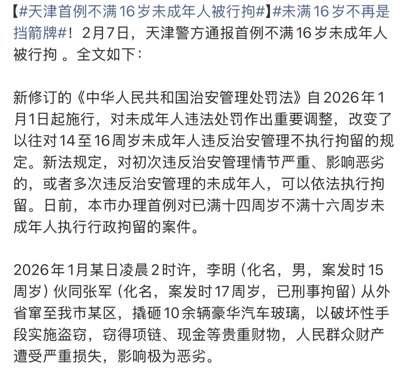 天津首例不满16岁未成年人被行拘,这个干得还行,年龄不再是挡箭牌,但在罪行恶劣的