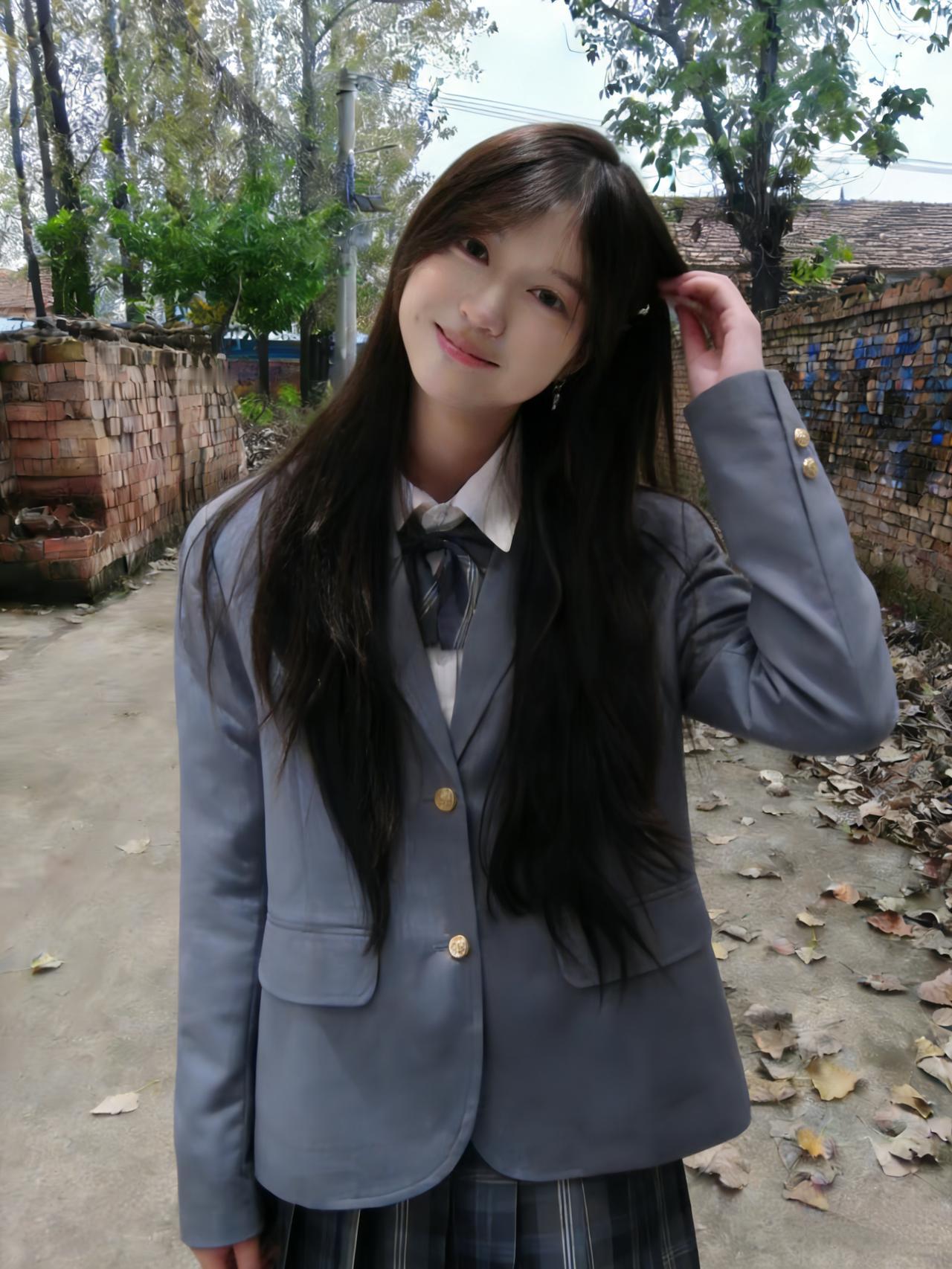 长发垂肩映晓光,灰衫素裙韵清扬,嫣然一笑暖横塘。 ~ 静立尘间无俗态,轻行乡陌有幽香,清姿皎皎胜春芳。