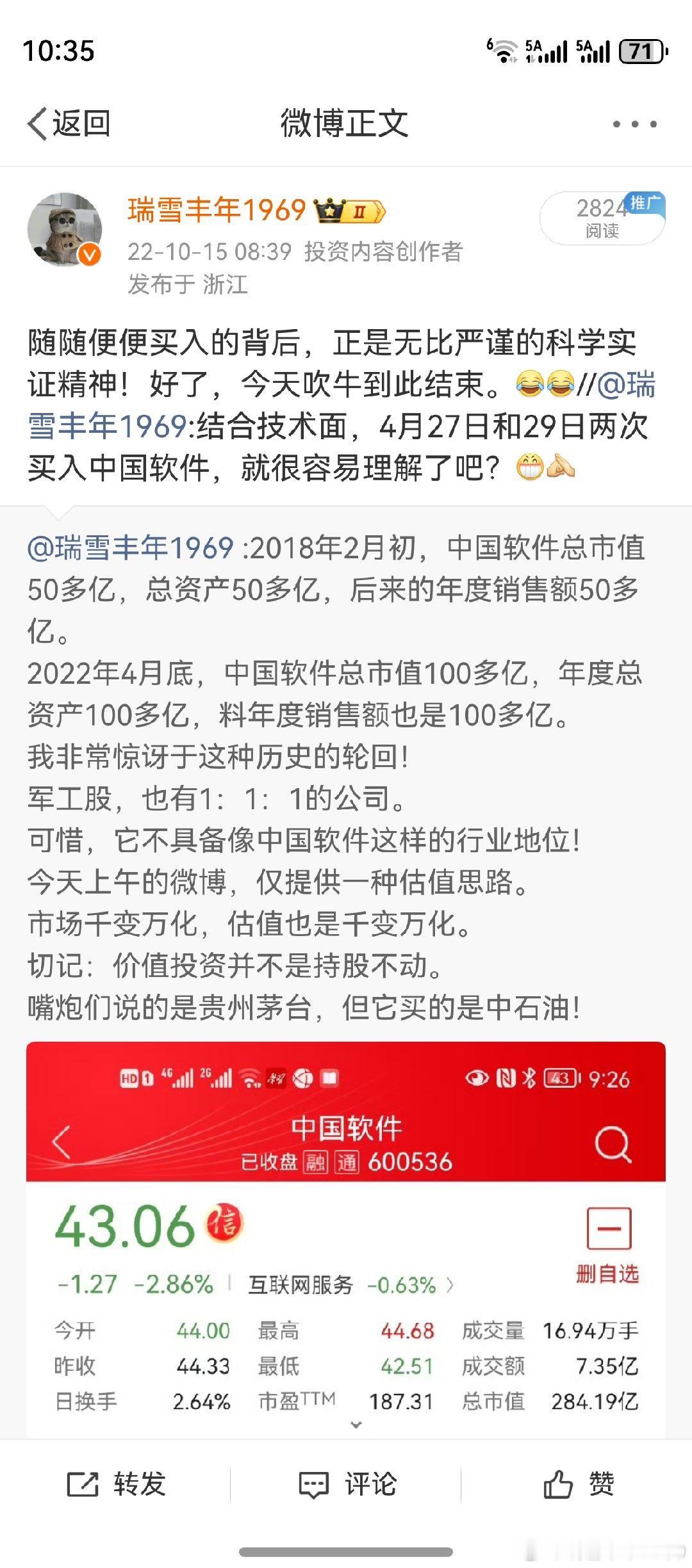 这一条微博,谈一谈股市里的抄底。近十多年来,只有在3个股票上抄过底。抄底,不是容易的事,其实更需要功夫!对行业公司没有数年深刻的把握,没有一种心的感悟,不建议轻易尝试。微博上提到的军工股,就是指航发科技。2024年2月6日,13.13元抄底买入。简简单单的买入,来源于四年的了解。仅提供一种理念及估值思路,抛砖引玉。