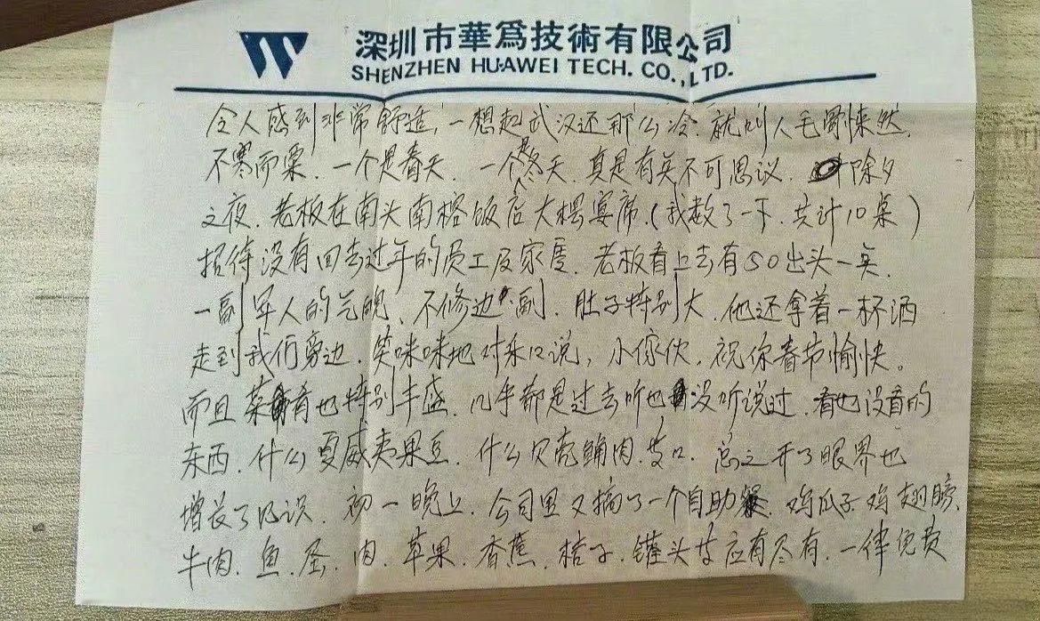 33年前,任正非请春节没回家的华为员工吃饭团圆,摆了10桌宴席,菜肴非常丰富,吃的东西很多都没见过,第二天的自助餐也一律免费。 这是一位员工的日记,记录下当时的场景和心情。
