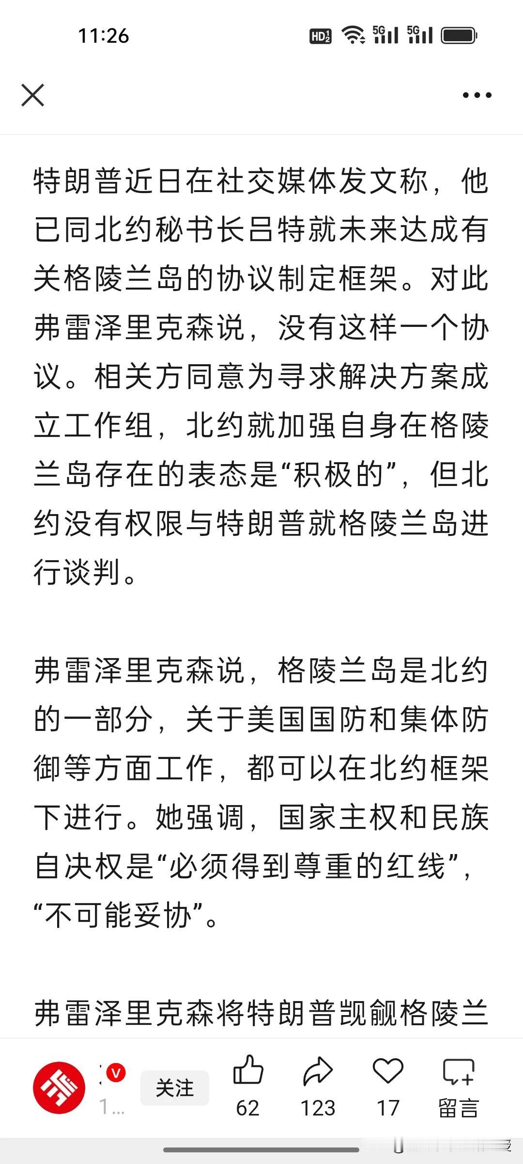 特朗普又吹牛了!格陵兰岛收购梦碎,谈判未达预期。 特朗普刚宣称与格陵兰岛谈判“即将达成一致”,就被丹麦官方狠狠打脸。丹麦明确表示,谈判未达预期,所谓“协议”纯属子虚乌有。 丹麦首相更是直接划下红线:领土主权不容妥协,北约也无权与特朗普单独谈判。加拿大此时在格陵兰岛开设领事馆,更像是在微妙局势中卡位。 从2019年想“买岛”到如今谈判落空,特朗普的格陵兰岛执念,终究只是一场自导自演的政治闹剧。