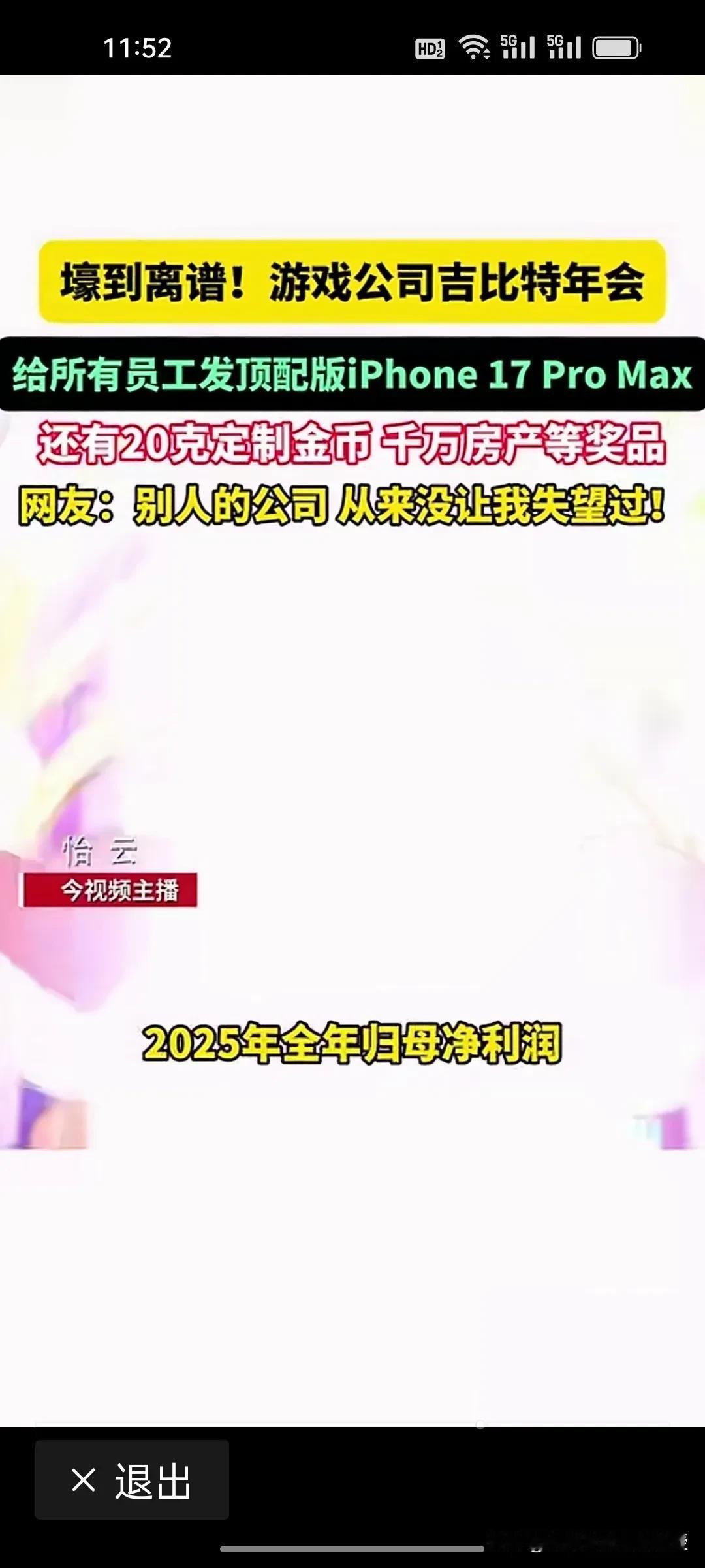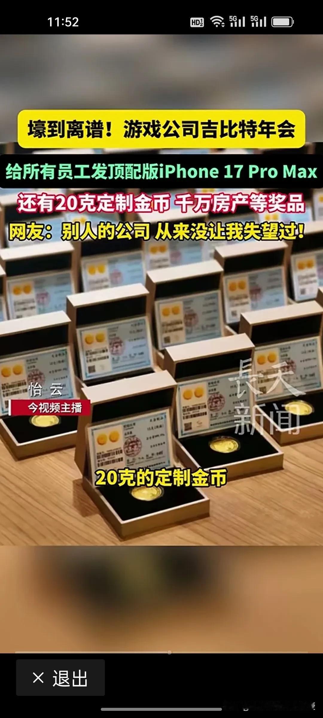 吉比特这个“游戏茅”是真的壕!年会上给所有员工发顶配版iPhone 17 Pro Max,还有20克定制金币,甚至拿出千万房产当抽奖礼品。 这份底气来自爆表的业绩:2025年预计归母净利润16.9亿-18.6亿,同比暴增79%-97%,2000人的公司,人均创造的利润更是腾讯游戏的3倍以上,净利润增速是腾讯游戏的5倍。值得一提的是,吉比特公司股价去年一年涨了93%。 当别的公司还在纠结发年货还是发钱时,吉比特用真金白银证明:游戏公司的利润,就是这么硬核。你羡慕这样的“钞能力”公司吗?