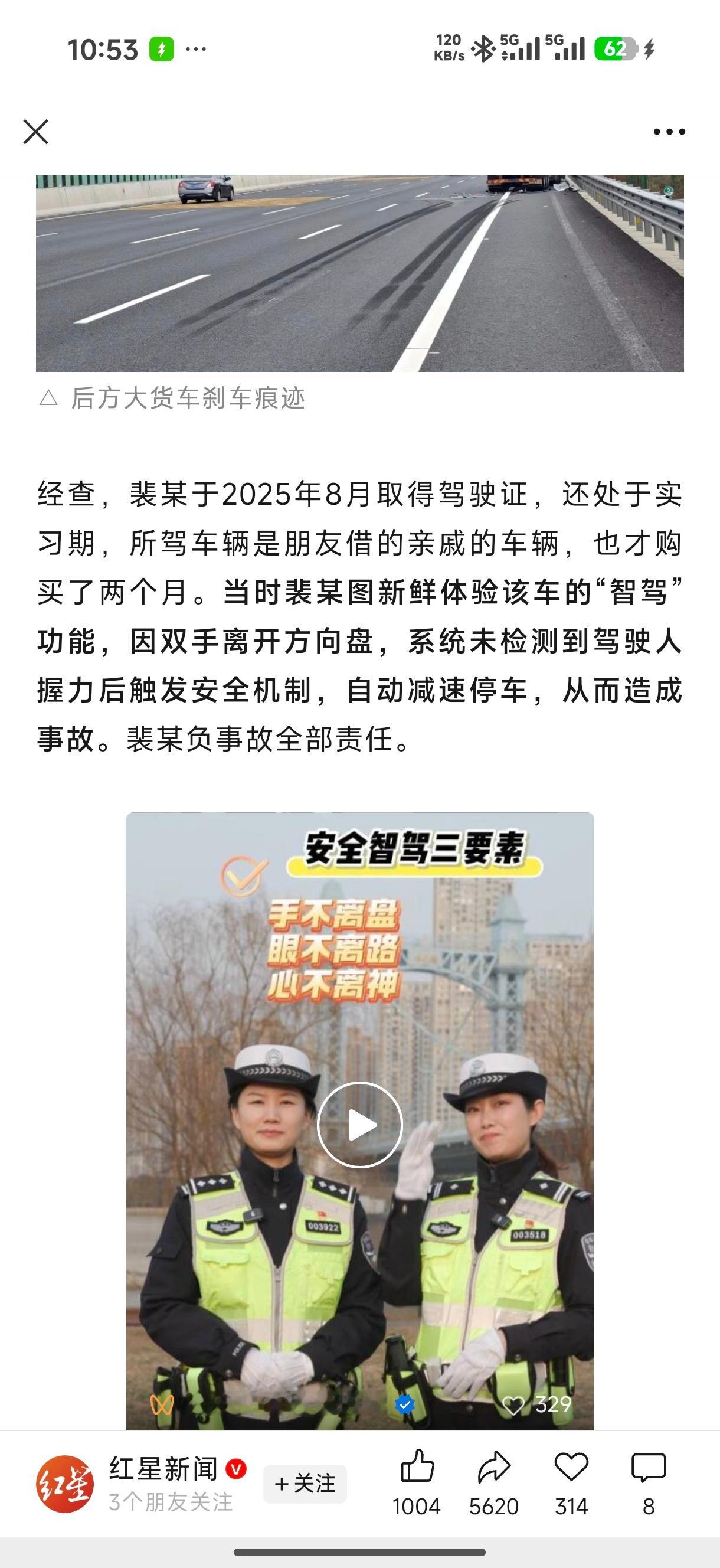 刚拿驾照的,借亲戚的车开智驾上高速,没握方向盘,智驾识别出来之后,刹车被后面货车追尾。。。。。。。
