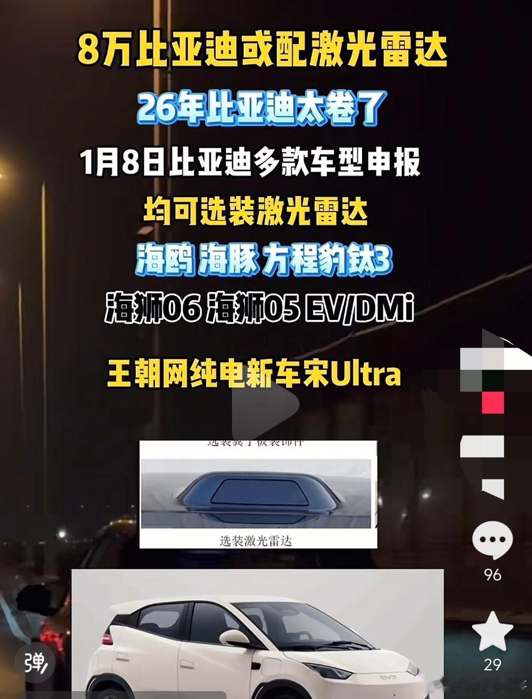 海鸥等入门级车型的激光雷达版本可能象征意义大于现实意义,选装起码加1万元,在出厂之前就得配置好。数量如果没有足够大,成本不菲可能还得亏钱做。目的是告诉大家,更高阶辅助驾驶这是一个普及功能,海鸥也有,不要神化。
