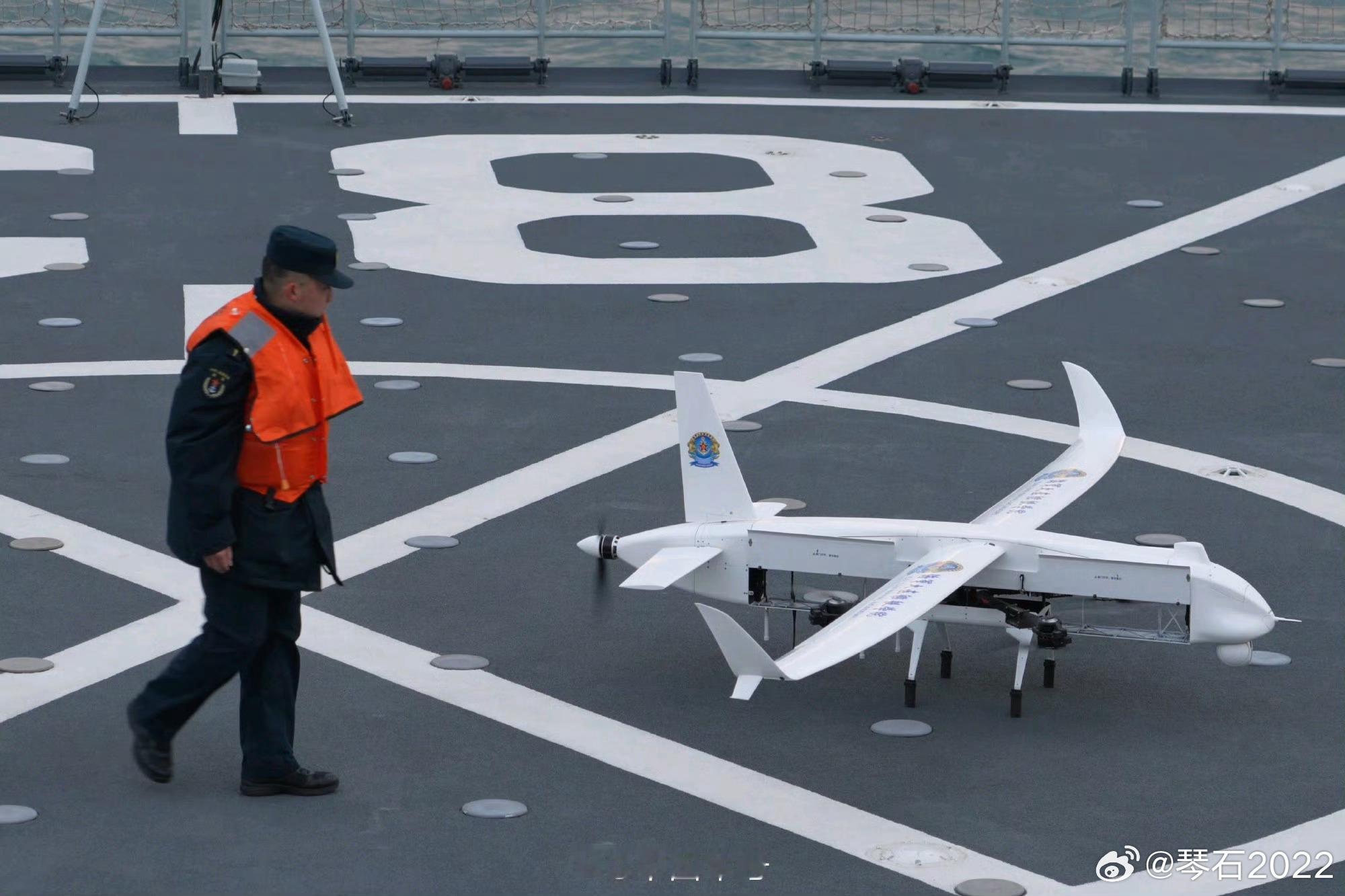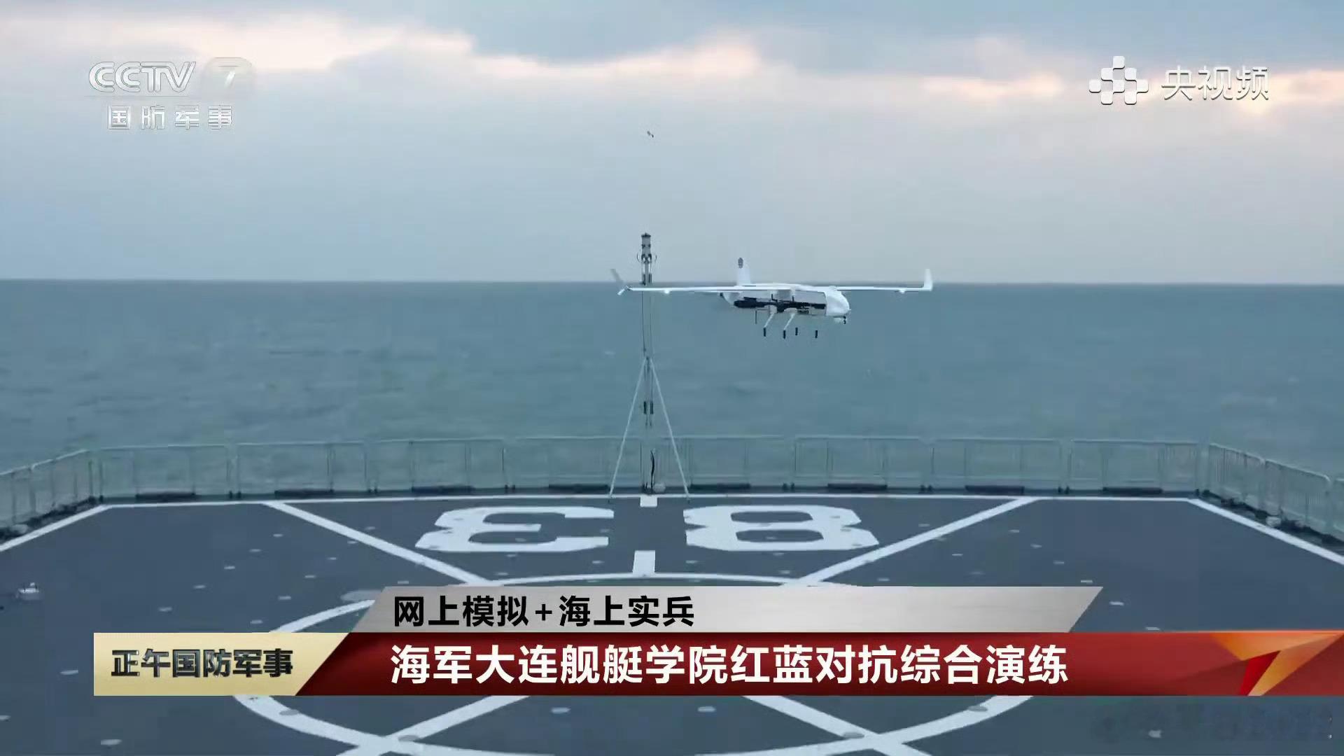 海军大连舰艇学院反无人机群集训这无人机可垂直起降,似乎可以折叠,然后靠尾部螺旋桨推进飞行。该部应该在配艘052C满足中远程防空战术学练。