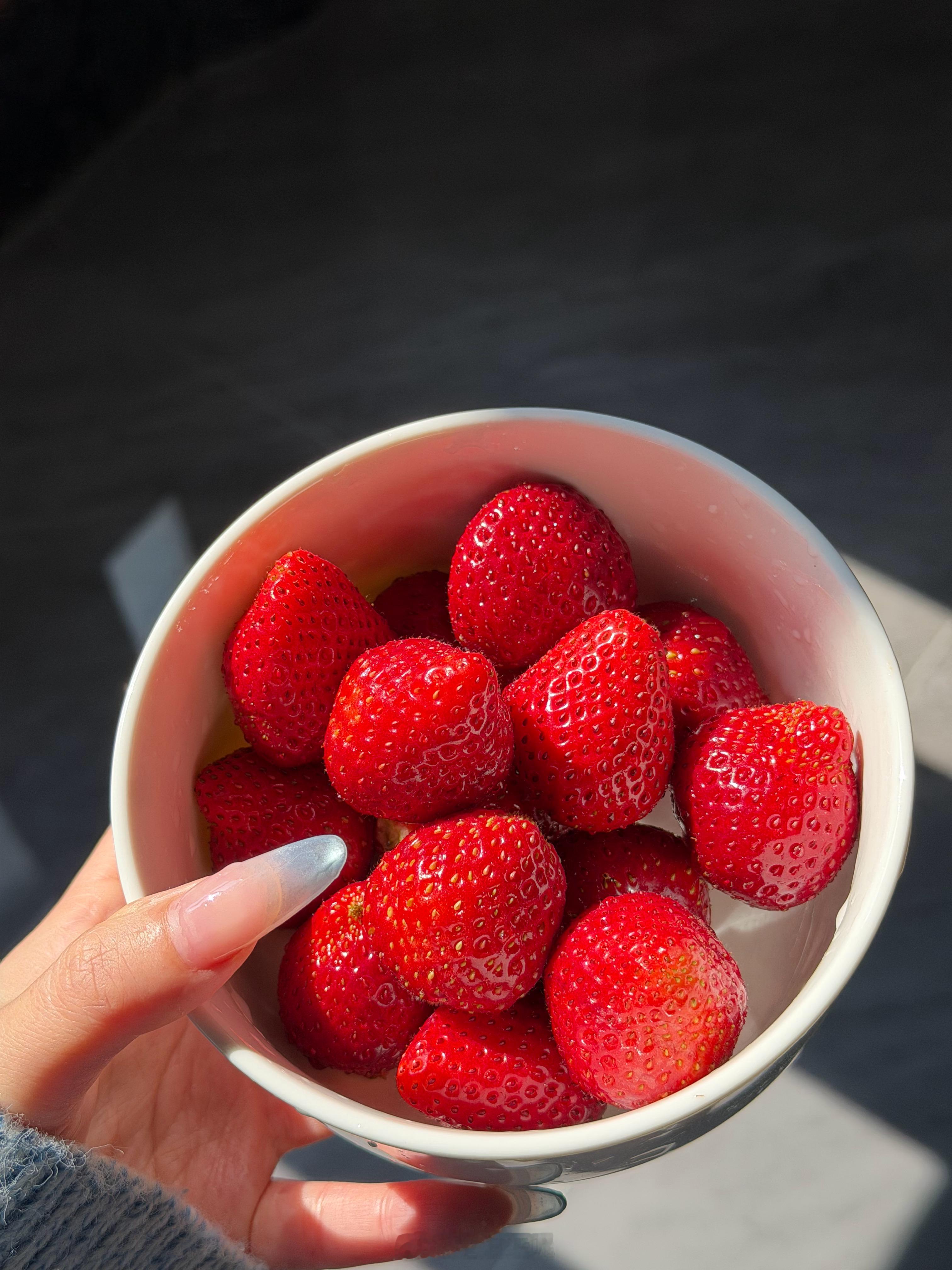 看了詹志斌微博被种草,第一次跟的团买到了从头红到尾的草莓!🍓阳光下一小碗真的好漂亮哦~