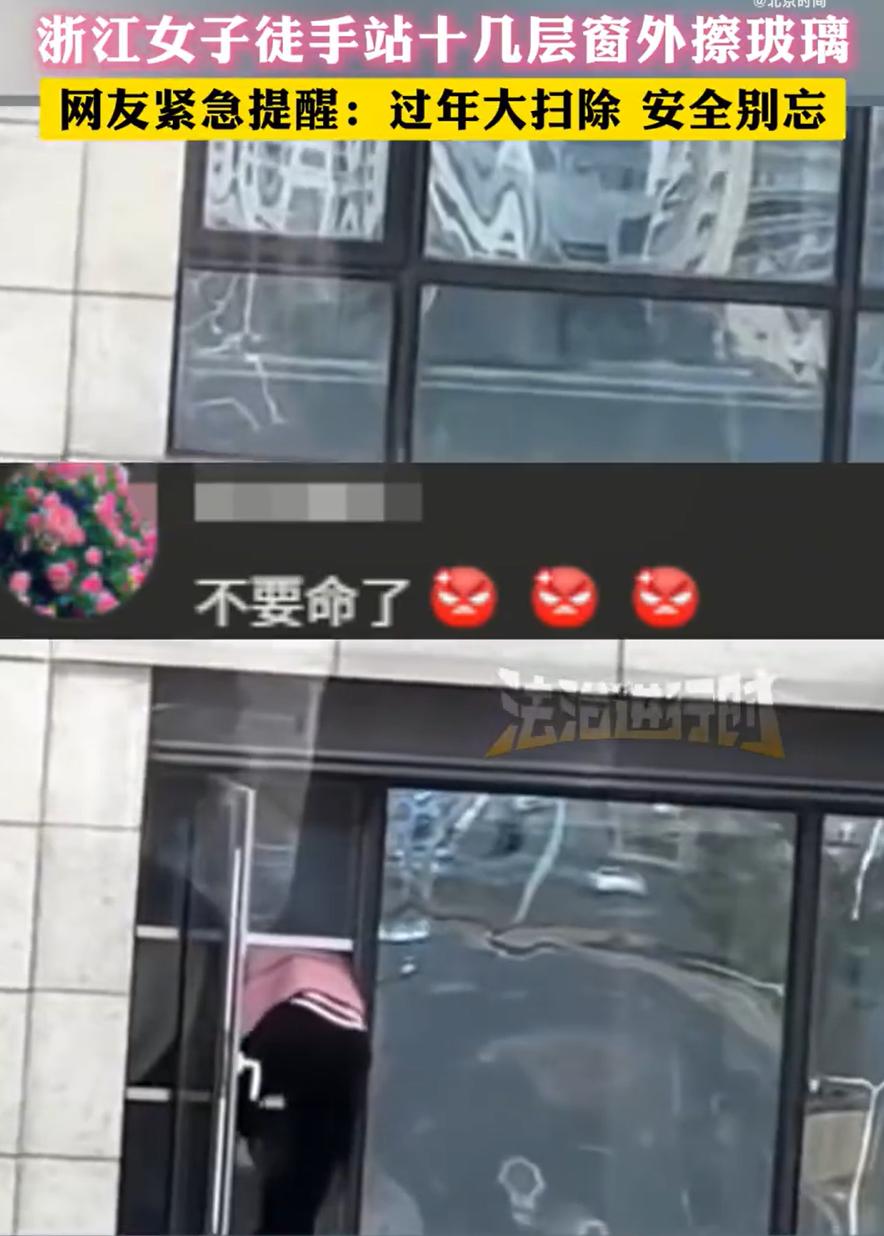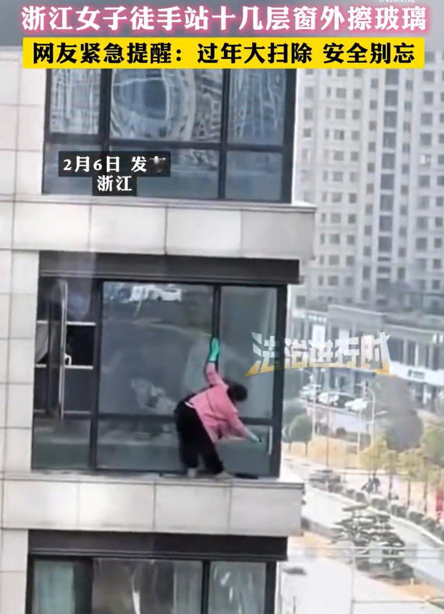 “这玻璃就非擦不可吗?”浙江杭州,一男子到阳台望风,突然看到对面楼有人站到窗户外面,仔细一看,一位大妈竟然徒手站在十几层的窗外在擦玻璃,大妈倒是不怕,可男子却吓得腿都软了 视频中,大妈整个人站在窗户外面,没有安全绳,没有防护网,她就那么站在窄窄的窗沿上,一只手抓着窗框,另一只手擦着玻璃。风吹过来,她的衣角微微飘动,人在半空中显得格外渺小。大妈动作很熟练,擦得仔细,看起来完全没觉得这有什么危险 但对面楼里的男子看得手心冒汗,腿都有些发软。他大气不敢出,更不敢喊一声,生怕突然的声响惊着了大妈,酿成不可挽回的后果。直到看着大妈擦完玻璃,稳稳地退回了屋里,他才松了口气 有网友说:我就算800年不擦,我也没有这个胆量 其实类似的事情不是第一次发生了。几乎一到过年前就能看到类似的场景,有人为了擦窗户或者捡东西,爬出高楼的窗外,可能擦一次,擦十次都没事,但只要有一次意外,就没有重来的机会了 这真的不是胆量问题,而是安全问题。住在高楼上,很多我们认为简单的事情,其实都需要格外小心。窗户外沿的灰尘、玻璃上的污渍,比起生命安全,真的没那么重要。如果实在需要清洁,也该请专业人员,或者至少使用足够长的工具,确保身体不探出窗外 说到底,一个家的温馨整洁,不在于玻璃有多亮,而在于里面的人是否平安。每次看到这样的新闻,都让人心里一紧。希望家里有老人的朋友,能多提醒一句:活儿可以放着,安全不能大意。年纪大了,更不必去挑战这种危险,平平安安,才是对家人最好的负责