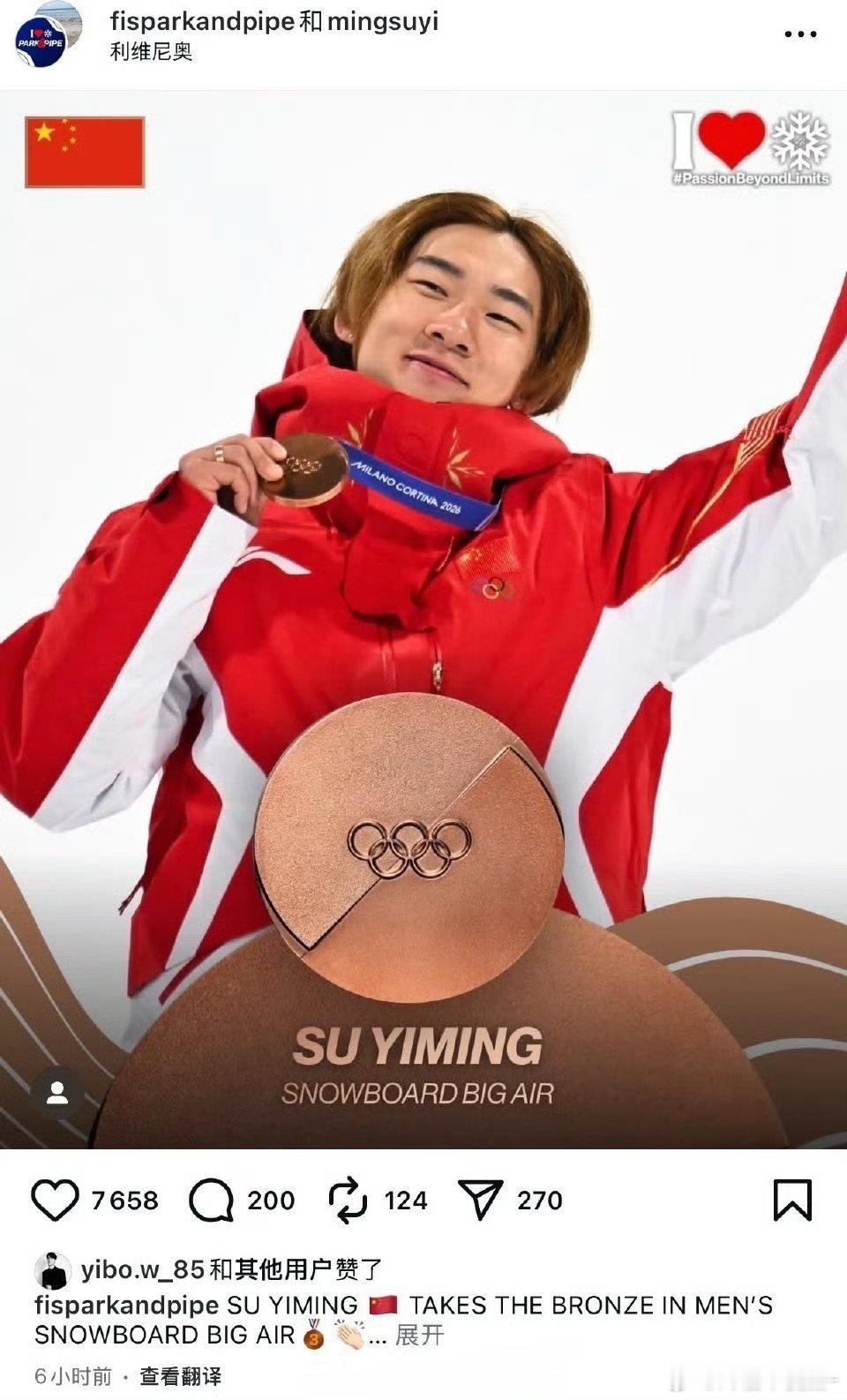 卧槽!苏翊鸣凌晨在冬奥会上获得了单板滑雪男子大跳台铜牌!王一博也凌晨在ins点赞咯!众所周知王一博和苏翊鸣已经是老熟人了 优秀的人总是互相吸引王一博点赞了苏翊鸣