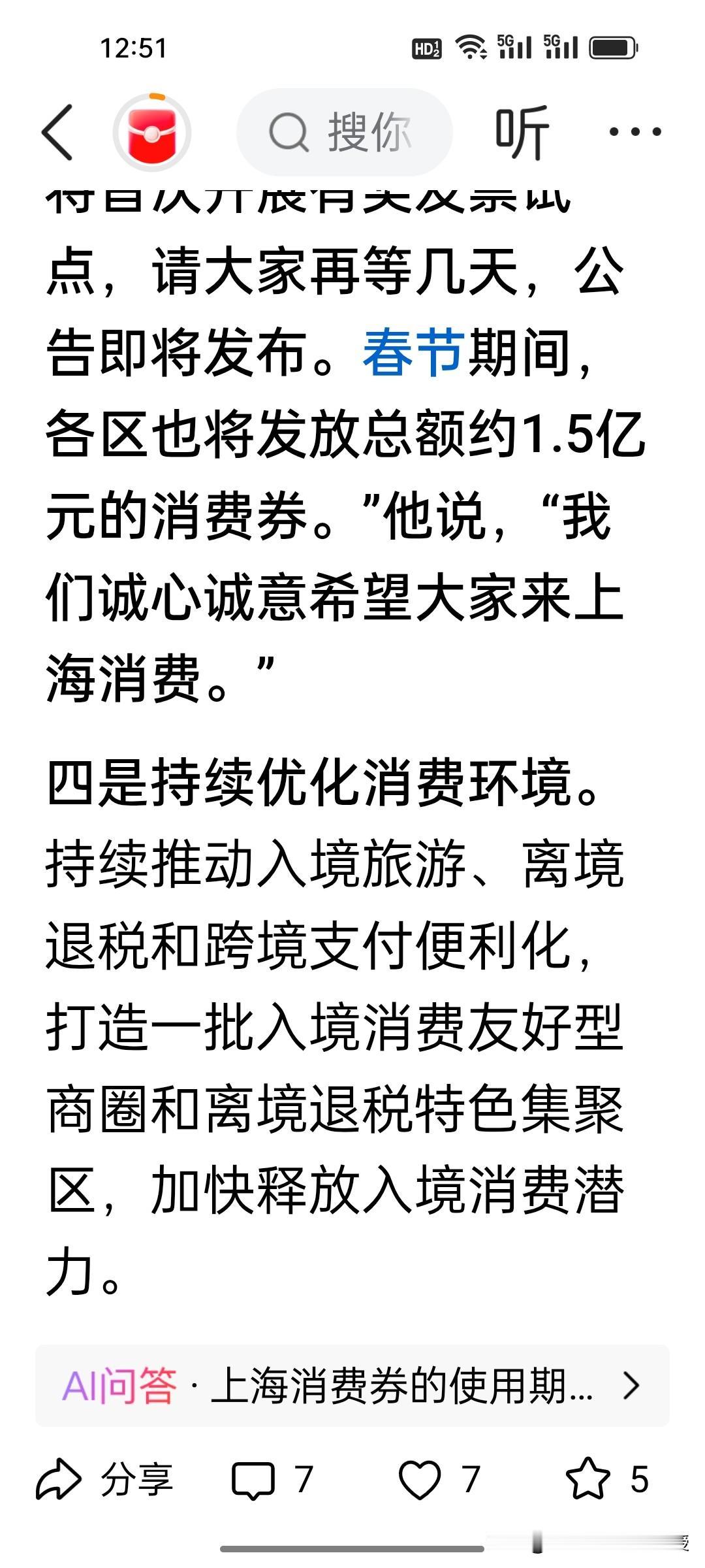 上海将要派发1.5亿消费券,按行业平均3-5倍的拉动效应,预计可撬动4.5亿-7.5亿元消费,间接带动约2亿-3.5亿元GDP增长。 有人说不如直接发钱,但消费券的核心是定向激活餐饮、零售等线下场景,避免资金沉淀,对中小商家的帮扶更直接。 当然,若能在消费券基础上叠加民生补贴,再加上上海人大代表建议的把收费的停车黄线去掉,对于沿街商铺的消费提振效果或许会更好。 消费券不是“发钱”的对立面,而是精准促消费的工具,你更支持哪种方式?