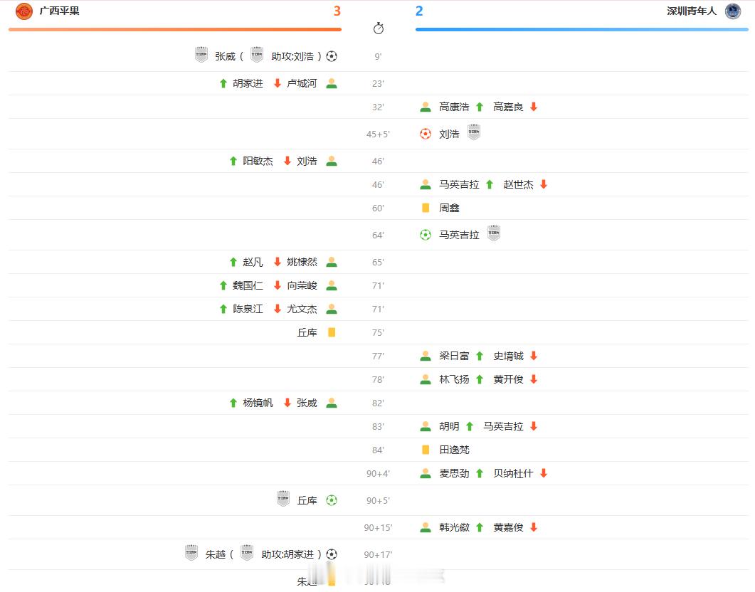 第19轮,平果主场3-2保级对手深圳青年人,这场的指控是补时17分钟,平果补时连入2球,还有俱乐部人士质疑来去不明的5万块钱。