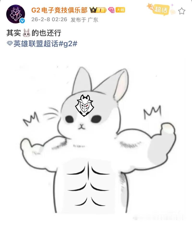 你也来?G2官博整活Bin健身梗,配文其实兔的也还行,随后补充道没P。