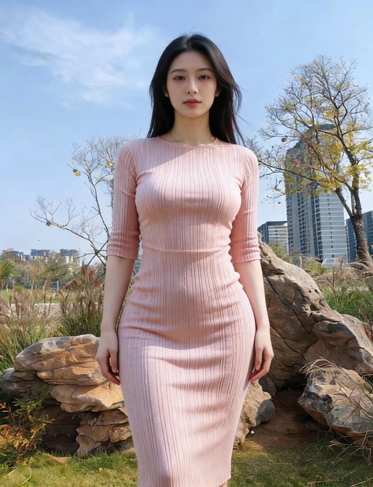 郊原极目望无涯,独立苍茫对云纱。 粉裙漫逐西风舞,长发轻随暮影斜。 眼底清波涵日月,眉间秀气透烟霞。 人间自有仙娥在,何必广寒折桂花。