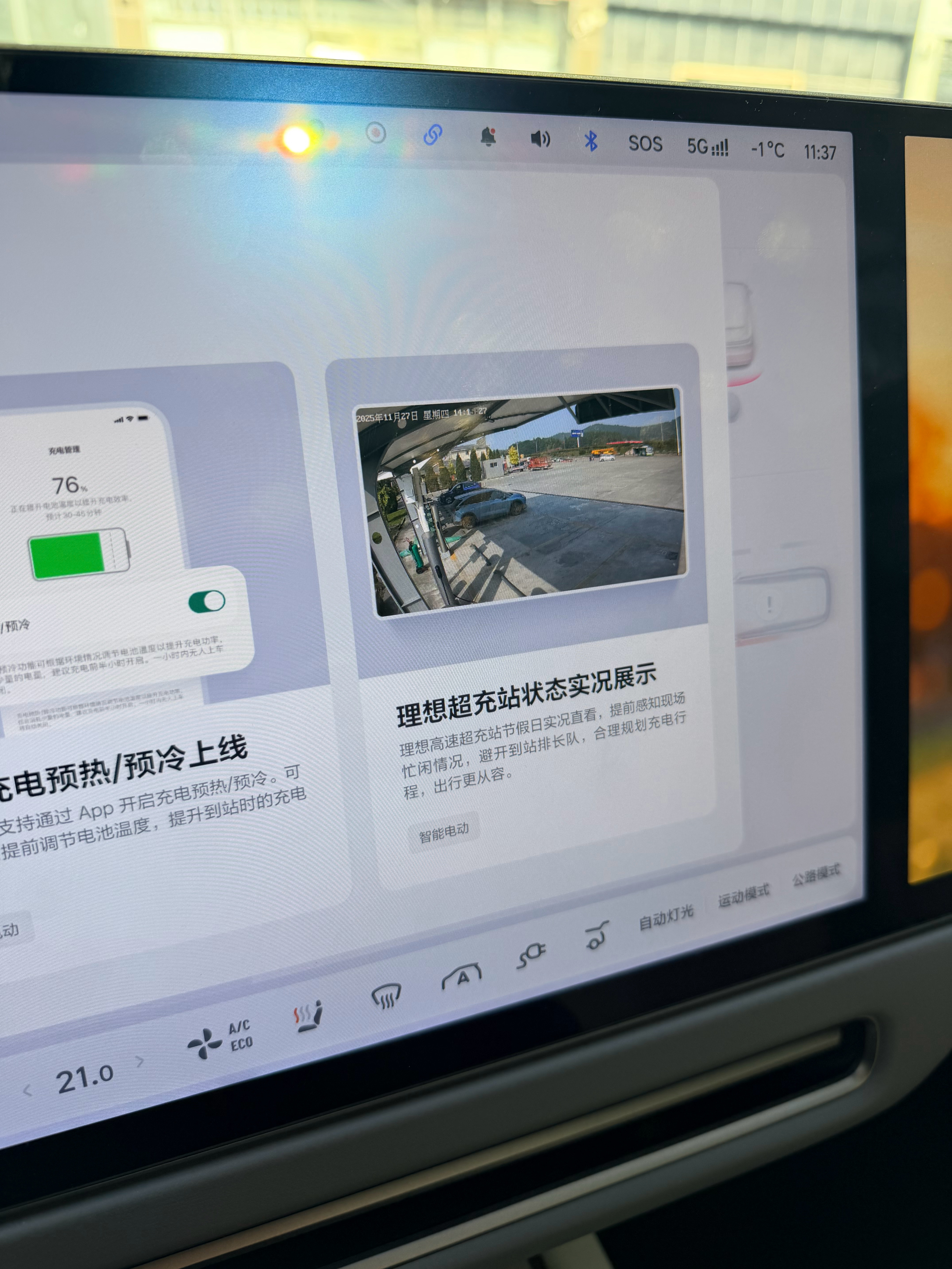 真快啊,理想 OTA8.3来了。辅助驾驶继续提升,而且这次针对春节出行推出了能实时观察到充电站情况的照片,可以了解排队情况。去年春节我开 MEGA 从北京到四川,站少车也少,一路畅通。今年纯电车增多,看看到时候5C 站啥情况,今年会不会和去年一样顺利?但是今年我没开自己的 i8,而是借了一台 i6满配黑武士,帅~猜猜为啥要借 i6?理想i6