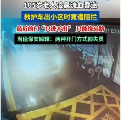 凌晨两点的上海,105岁老人头破血流陷入昏迷,急救灯划破夜色,却在小区门口被死死卡住。家属崩溃嘶吼、医护反复解释,保安只回一句:东门只进不出,必须绕路。 这不是冰冷的制度演练,是和死神赛跑的生死时速。老人额头7厘米裂口,意识全无,每一秒都在透支生机。平时的单向通行规则,在急救警报面前,难道不该立刻让道?家属质问:深夜无车,人工抬杆不过举手之劳,为何非要卡死流程、逼救护车倒车绕行? 我们不苛责保安守规,但规则的底色是守护生命,不是机械执行。物业事后也承认,特种车辆本就不受单向限制,可一线人员偏偏把“规定”举得比人命还高。这不是尽责,是麻木;不是严谨,是失职。 多少悲剧,都源于“按章办事”的冷漠。小区门禁、消防通道、应急车道,本是生命通道,却屡屡被僵化管理、人情冷漠堵死。我们住的是小区,不是牢笼;守的是秩序,不是冷血。 万幸老人暂无生命危险,可那句“只进不出”,寒了无数人的心。今天是百岁老人,明天可能是你我家人。生命面前,没有例外,只有优先。规则可以变通,人命不能重来。 别让冰冷的门禁,挡住救命的通道;别让死板的流程,凉了人间的温度。你遇到过小区应急放行难吗?物业该不该为生命开绿灯?评论区说说你的看法。上海老人就医 上海急救员 105岁老人急救