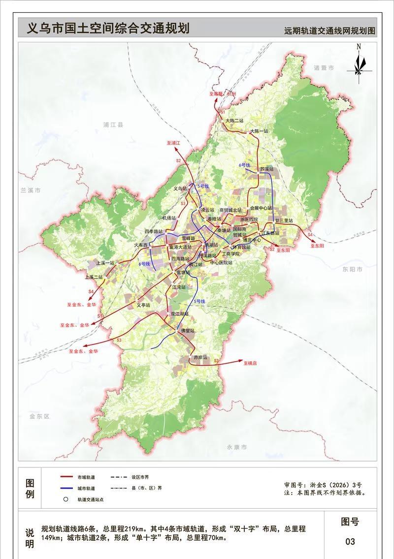 规划轨道线路6条,义乌远期轨道交通线网规划图公布 义乌