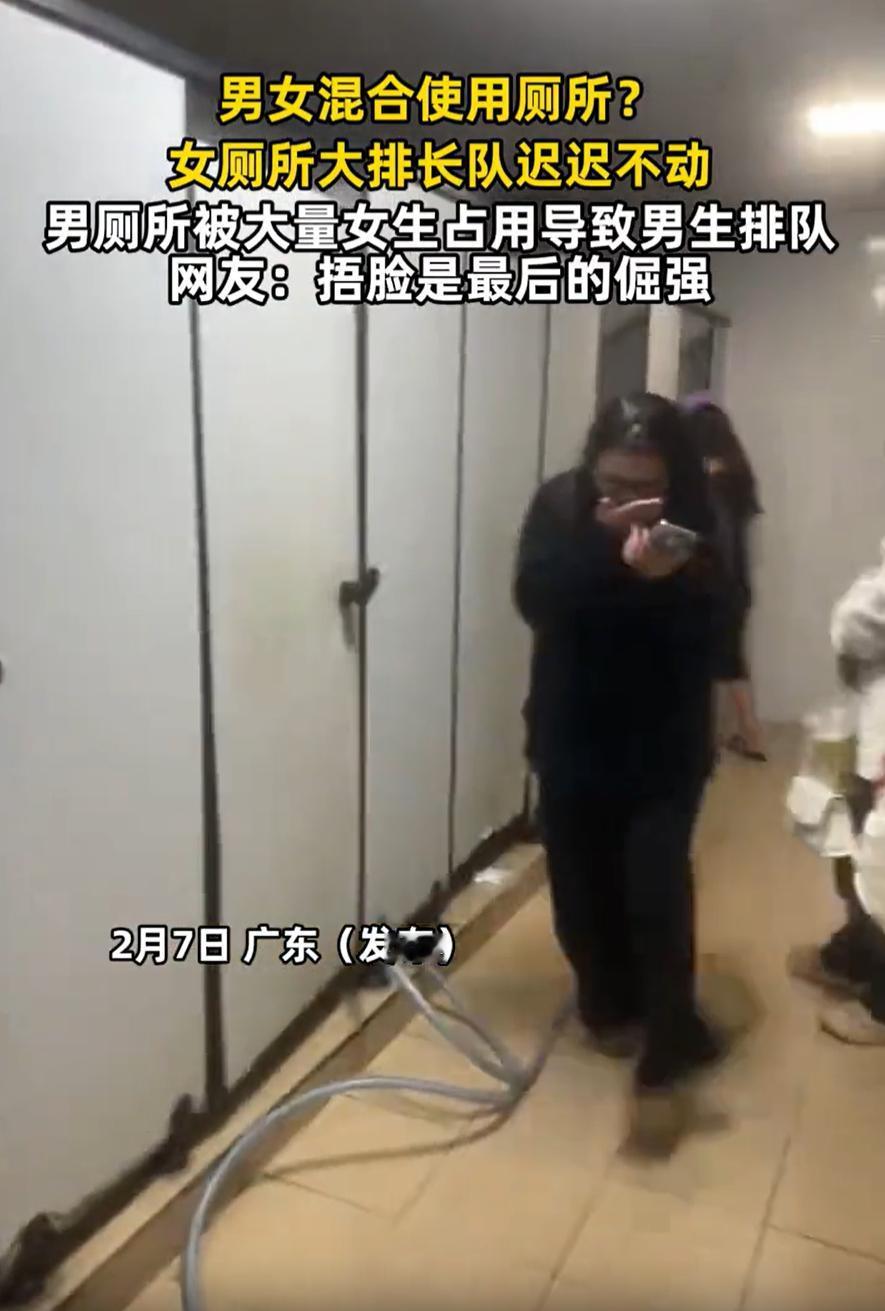广东,一男子去景区准备上厕所,结果刚走进男厕所,差点以为走错了,里面竟然有男有女在排队,完全成了男女混合的厕所,反观女厕那边更是一动不动,网友:捂脸是最后的倔强了 当天,男子到景区玩时想要去厕所,到了公厕门口时, 就看到女厕那边排起了长队,半天都不动地方,当时他还庆幸,还好男厕不会这样,可等他走进去后,却发现自己有些想错了 里面居然男男女女都在排队,场面一时让人有点恍惚,差点以为是自己走错了地方。仔细一看才发现,还真是男厕所,只是女性游客也不少,大家默默排着队,气氛倒还算平静 有的女生上完厕所出来,看到有男生在门外等候,脸上难免露出几分不好意思;还有人发现这位游客在拿手机拍视频,赶紧捂着脸笑着快步走开。反倒是排队的男生们,大多低着头看手机,或者望着天花板,装作无事发生 有网友说:出现这种情况主要是设计的不合理,如果女的4、男的1就合理,这样速度也会变快 在我看来,根源未必只是男女厕所比例的问题。真正造成景区厕所“男女混用”的,其实是两个原因 第一,景区流量设计“重游玩、轻配套”。很多景区的规划重点都放在景点打造、游乐项目上,对厕所这类基础设施常常是“按最低标准凑合”。平时人少还能应付,一到节假日,游客量暴增,厕所瞬间就不够用了 第二,如厕习惯差异被忽略了。女性如厕时间普遍比男性长,加上有时需要照顾小孩、整理衣物,使用镜子等习惯,导致实际使用时间更长。如果简单按男女1:1的比例设置坑位,女厕所排长队几乎是必然的 对此,大家怎么看?
