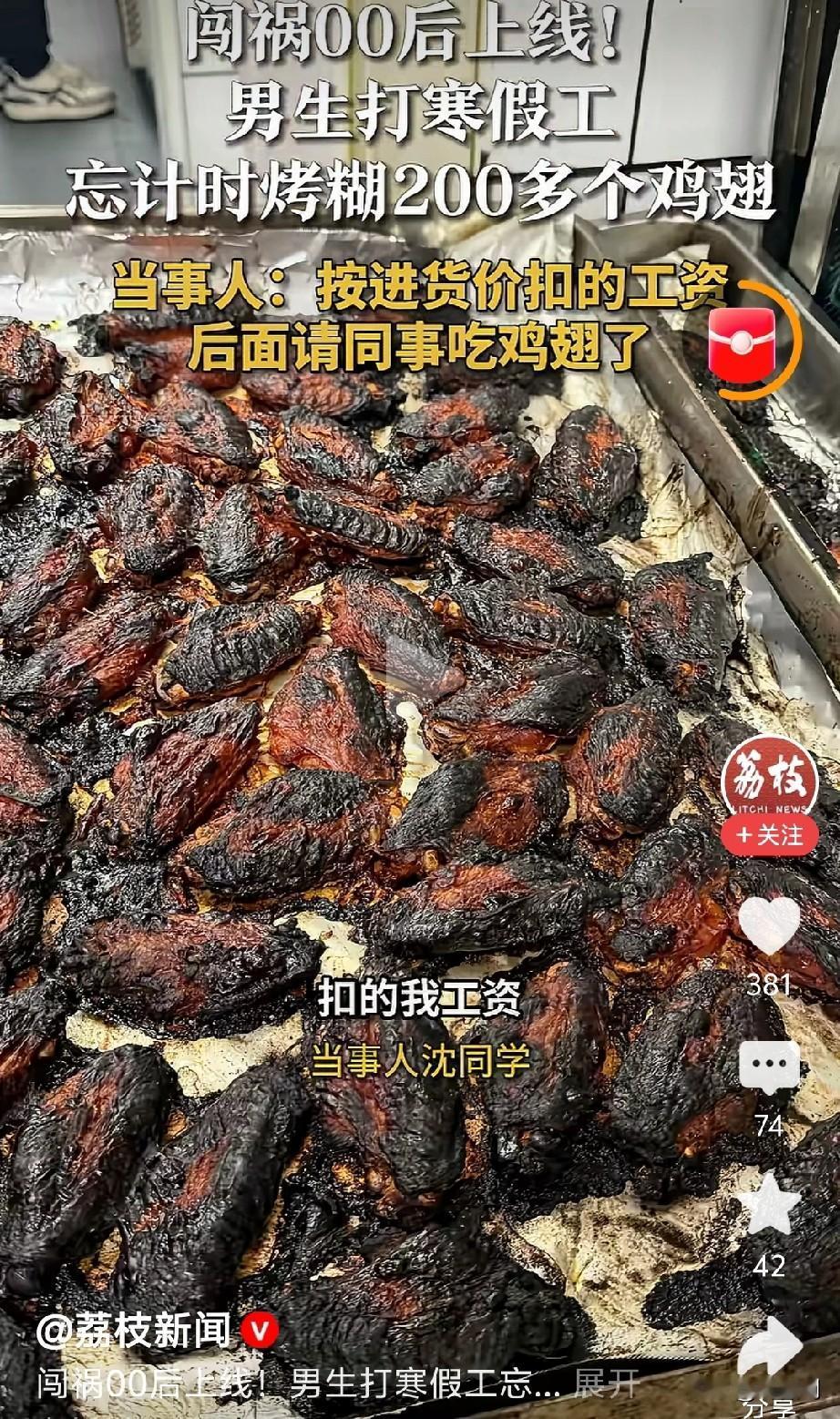 00后寒假工闯祸,老板却被骂惨了。 一00后男生打寒假工,忘调计时器,烤糊200多个鸡翅。 按进货价扣工资,烤糊了的鸡翅请同事吃了。 一件不大的事情,网友吵翻了,有说老板良心的,也有说老板违法的。 依冷傲剑看:按进货价扣工资并要求员工自行处理烤糊鸡翅,未必合理合法,需同时满足以下全部条件才合规: 1. 有实际损失且员工有过错:烤糊鸡翅确系员工故意或重大过失导致,且造成用人单位经济损失。 2. 有合法依据:劳动合同有约定,或经民主程序制定、公示告知的规章制度有明确赔偿标准 。 3. 扣除有限度:每月扣除不超当月工资20%,且扣除后工资不低于当地最低工资标准 。 4. 处理要合规:烤糊鸡翅属工作失误所致,用人单位可要求员工承担赔偿,但不能以“自己处理”为由变相加重负担或剥夺员工合法报酬;若要求员工自费处理,需有合同或制度依据。