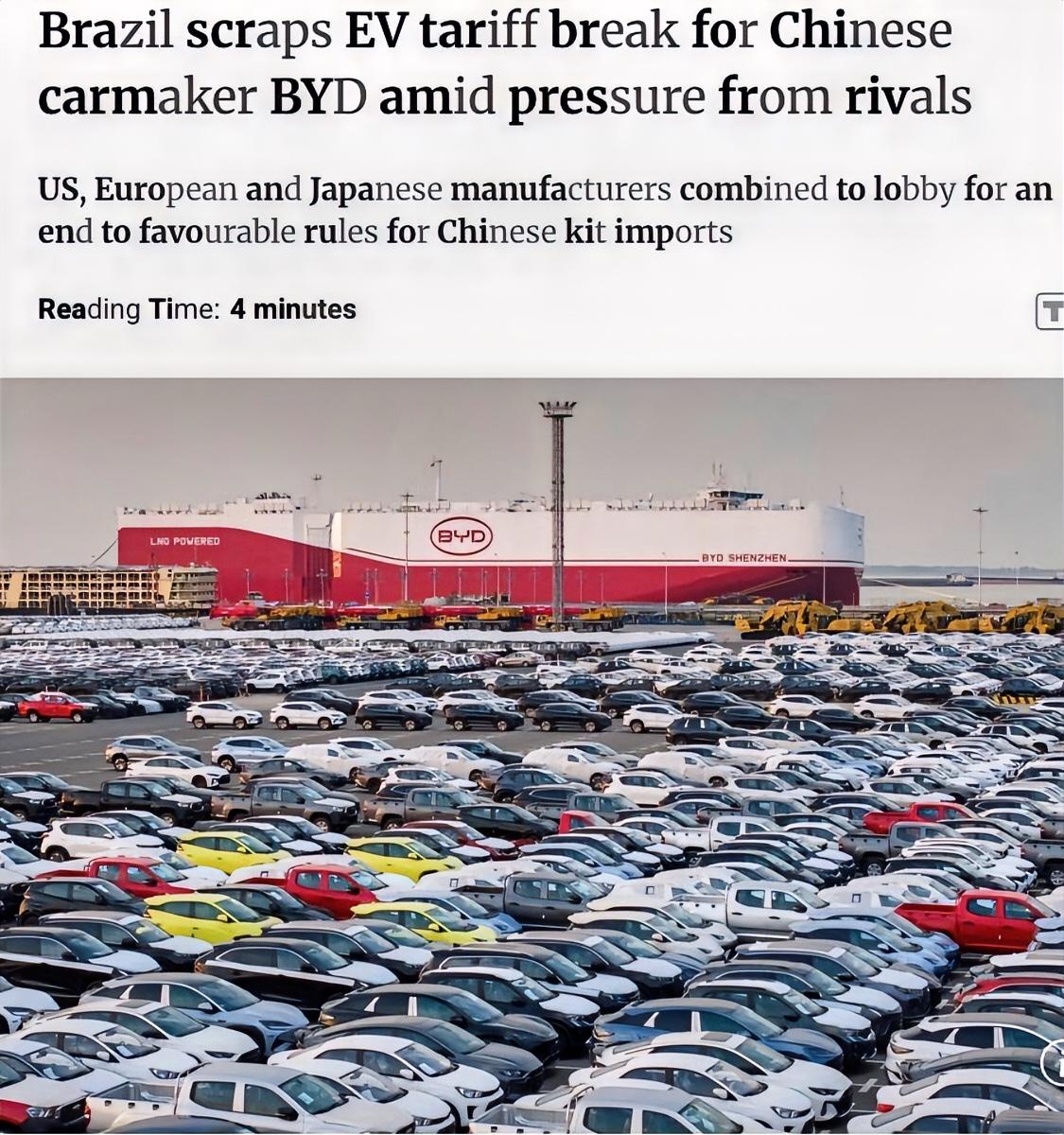外媒:巴西取消了给予中国车企比亚迪的电动汽车关税豁免政策,该政策曾允许使用中国进口零部件组装的电动车以较低成本进入巴西市场。豁免于1月31日到期且未被续期。 殊不知,这一 “政策调整早有市场铺垫”。此前关税豁免期间,比亚迪借低税率优势快速抢占巴西市场,前 5 个月就向巴西输出约 2.2 万辆电动车,一度占据当地新能源市场近三成份额。这种 “快速崛起” 引发巴西本土车企不满,多次游说政府采取保护措施,政策取消实则是内外压力共同作用的结果。 其实,作为金砖国家成员,巴西一直希望培育本土电动车产业链,而比亚迪凭借技术与成本优势,让本土企业难以竞争。取消关税豁免本质是通过提高准入门槛,为本土产业争取发展时间,如同家长给自家孩子撑起保护伞,抵御外来竞争者的冲击。 可谁能想到,面对关税上调风险,比亚迪早已在巴西布局新工厂,最快已启动组装产线,计划用进口零部件年组装 5 万辆汽车,并争取与巴西官方商定较低税率。其还在关税调整前完成了全年进口量储备,如同棋手提前算好对手步数,做好了应对准备。 反倒,同样作为金砖国家,印度此前为 5000 亿美国订单 “弃俄投美”,尽显唯利是图;而巴西取消关税豁免,虽有贸易保护成分,但更多是基于本土产业发展的考量,两者出发点截然不同,如同两种不同的处世之道。 不过,巴西电动车市场起步较晚,核心技术与产业链均不完善,过度依赖进口将导致市场被外资垄断。取消关税豁免既能提高外资企业成本,又能倒逼其在巴西本地建厂,带动零部件配套产业发展,这种 “以退为进” 的策略,实则是发展中国家的无奈之举。 与此同时,金砖国家本应秉持开放合作理念,但巴西的贸易保护措施,暴露出成员国在产业竞争中的利益分歧。这种 “各扫门前雪” 的操作,可能影响金砖国家间的贸易互信,如同团队内部出现利益冲突,考验整体合作的包容性。 话说回来,面对关税壁垒,比亚迪没有被动应对,而是通过 “本地化生产 + 政策协商” 双路径破局。其巴西新厂全面运营后,将创造 2 万个直接和间接工作岗位,既带动当地就业,又能降低关税影响,这种 “融入本地” 的策略,让贸易壁垒难以发挥实质作用。 说到底,巴西取消比亚迪电动车关税豁免,本质是产业竞争下的贸易保护选择。金砖国家间的合作虽有分歧,但开放共赢仍是主流。比亚迪的提前布局与应对智慧,也证明中国车企已具备应对复杂国际环境的能力。 以上是小编个人看法,如果您也认同,麻烦点赞支持!有更好的见解也欢迎在评论区留言,方便大家一同探讨。