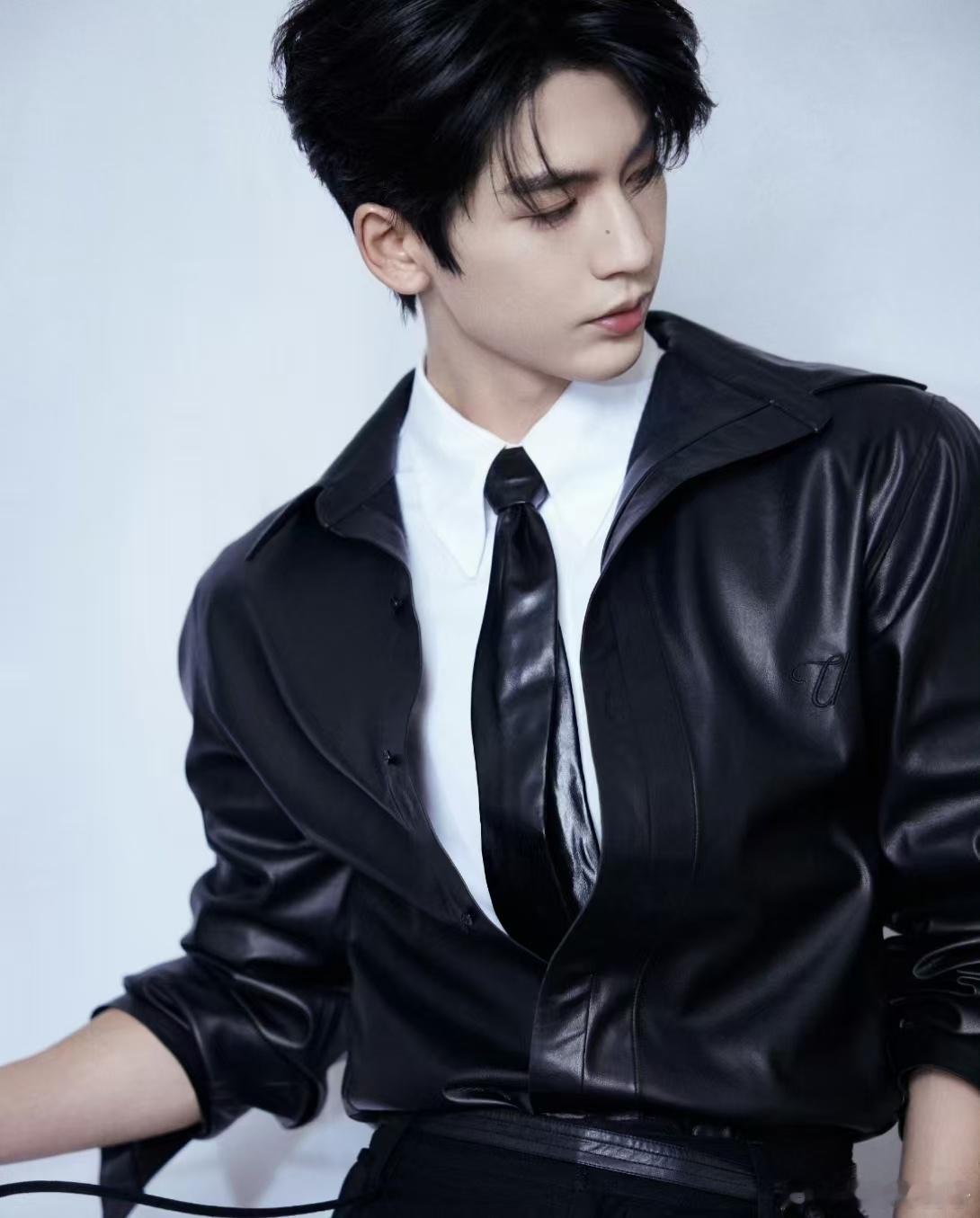 张凌赫耳夹皮衣造型 暗黑皮衣配银色耳夹,禁欲感与破碎感交织。身形挺拔如雕塑,眼神干净又有故事感,造型高级不浮夸,颜值与气质双在线。