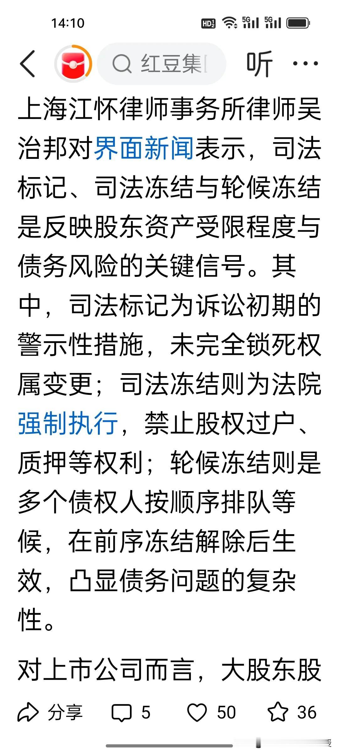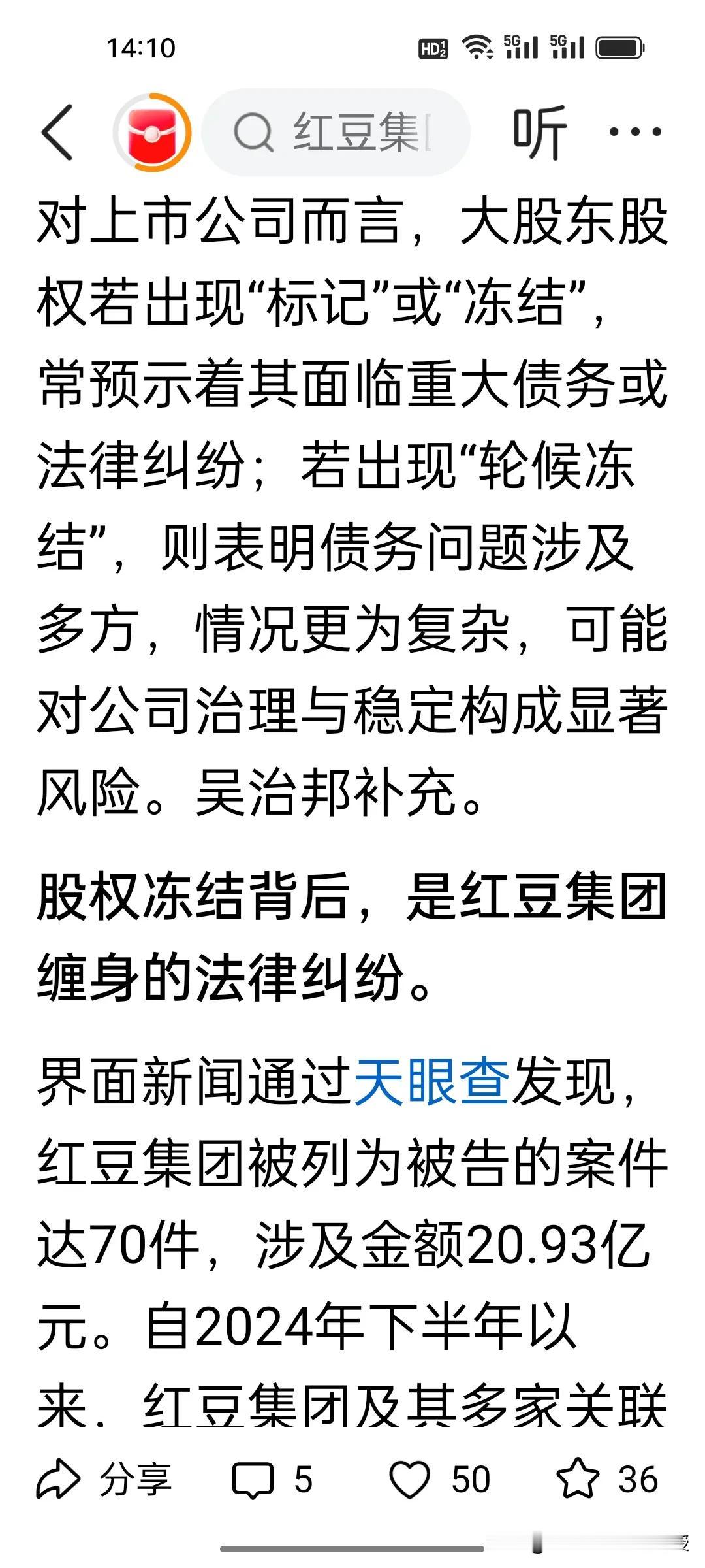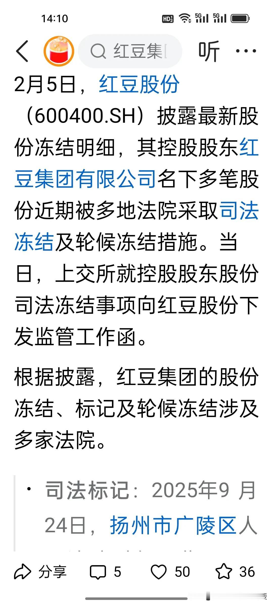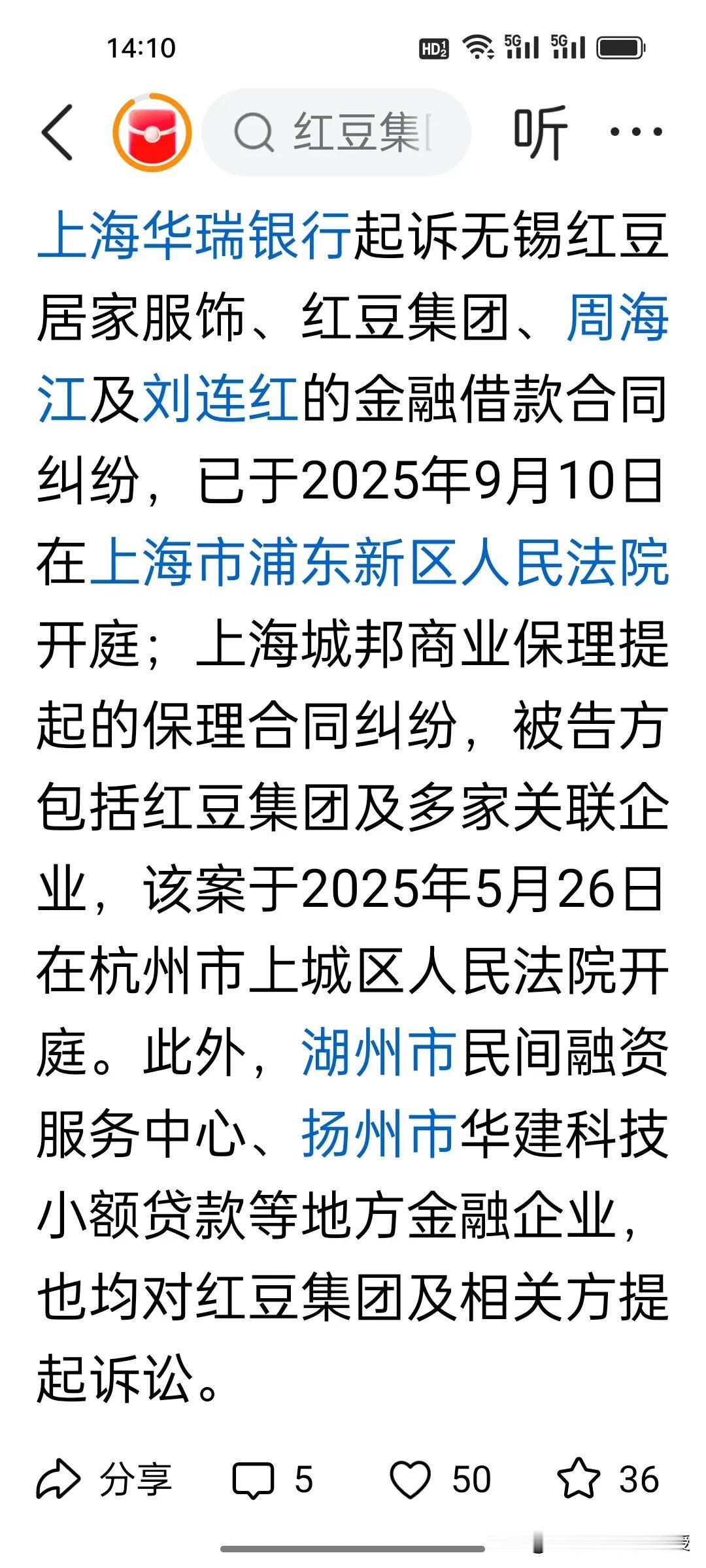 真的没想到阿,红豆集团也会遭遇债务危机!一组数据触目惊心! 根据《界面新闻》报道,男装头部品牌红豆集团超95%上市公司股份遭轮候冻结,老牌苏企深陷困局,截至2024年9月集团总资产554.62亿、总负债371.09亿,资产负债率66.91%,2025年新增43起司法案件、被执行总额超12亿。 红豆的危机早有端倪:1.多元扩张摊薄资金,跨界布局致现金流承压;2.传统主业增长疲软,营收利润持续下滑;3.关联债务牵连,资金链传导引发连锁反应。 红豆位列2024江苏民企200强第17位、无锡民企百强第5,掌舵人周海江为江苏省政协常委。 红豆集团的实业根基仍在,若断臂止损聚焦主业、盘活优质资产仍有翻身可能。这也给传统企业敲醒警钟:严控负债、深耕主业才是生存根本,不能因盲目扩张寻找新利润增长点而丢了基本盘。