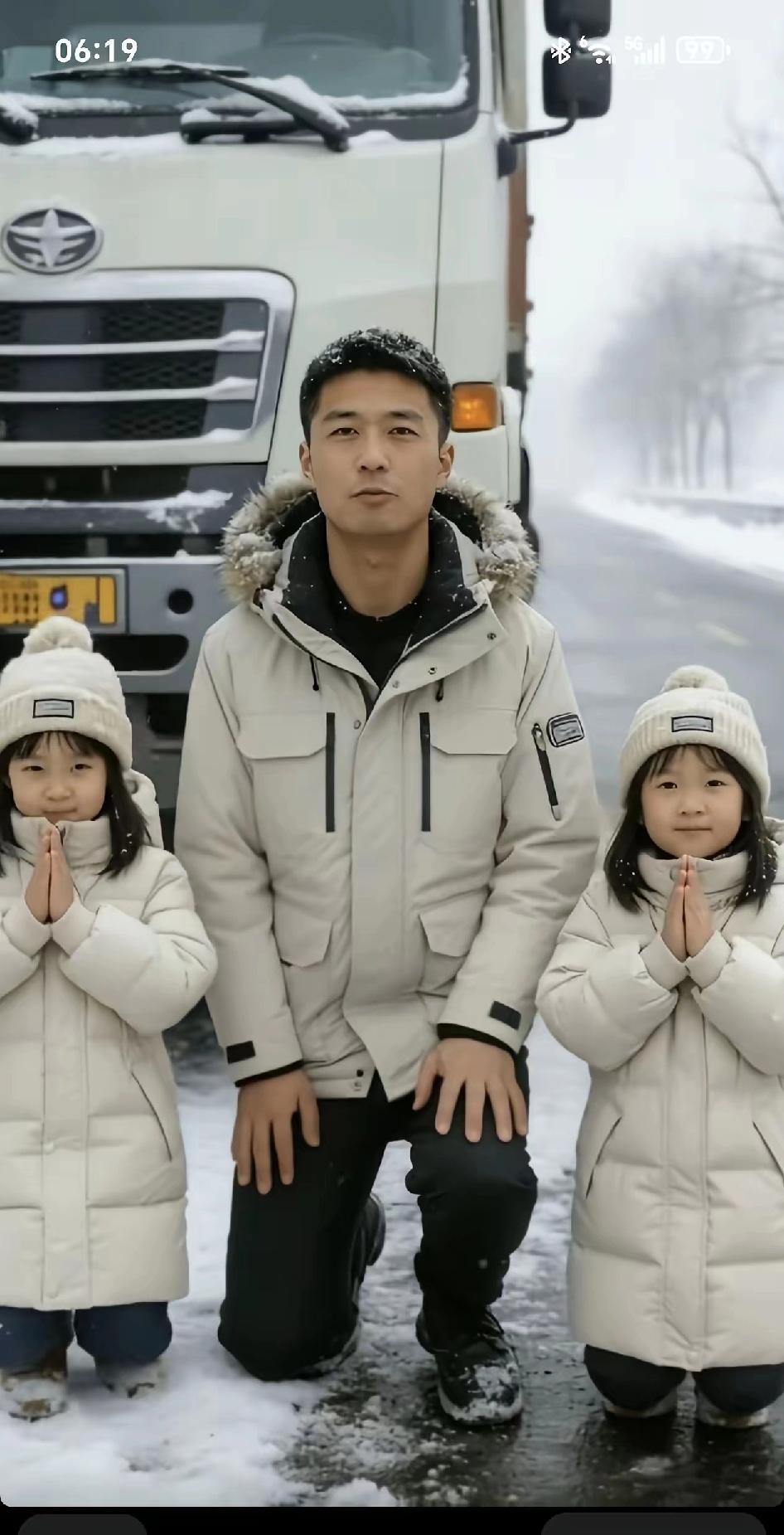 媳妇嫌弃我没本事,跟别人跑了。如今我独自带着两个孩子去送货,全程四千二百多里路。眼下这雪下得这么大,我厚着脸皮求大家,给我一句“一路平安”,麻烦帮我点一下右边的加号,谢谢大伙啦…… 帅哥,为了生活真不容易,媳妇也跟别人跑了,大雪天气,带娃跑车一定要注意安全,开慢点,服务区注意休息,照顾好孩子! 我今年三十二岁,老家在豫东的一个小村子,这辈子没做过什么惊天动地的事,就想着踏踏实实干活,把日子过安稳。 之前我在郑州的工地扎钢筋,风吹日晒的,一天能挣两百多块,虽然累,但每个月把钱寄回家,看着媳妇把家里打理得井井有条,两个孩子围着我喊爸爸,我就觉得浑身是劲。 谁知道日子慢慢过着,媳妇的心思变了,总说我没出息,守着工地干一辈子都翻不了身。她总念叨隔壁村的谁谁谁跟着老板跑业务,一年挣几十万,谁谁谁开网店足不出户就赚钱,话里话外都是对我的嫌弃。 我不是没想过换工作,可我没文化,没手艺,除了卖力气,实在不知道还能做什么。我跟她商量,工地活虽然苦,但稳定,等攒够钱就回老家开个小超市,安稳过日子。 可她根本听不进去,去年腊月,她收拾了简单的行李,跟着一个跑短途运输的男人走了,连一句道别都没留给我和孩子。 那天晚上,六岁的女儿和四岁的儿子哭着找妈妈,我抱着两个孩子坐在冰冷的炕上,一夜没合眼,眼泪把棉袄都打湿了。 媳妇走后,工地的活也断断续续的,我没法把孩子丢给年迈的父母,只能找了份长途送货的活。 老板看我实在,又带着孩子不容易,特意给我安排了固定的路线,从河北保定到广东佛山,全程四千二百多里,拉的都是日用品,一趟下来能挣三千多块。这钱不多,但够两个孩子的学费和生活费,也能让我撑起这个家。 今天这场雪下得猝不及防,高速上能见度不足五十米,我把车速压到了四十码,双手紧紧攥着方向盘,不敢有一丝松懈。 女儿裹着厚厚的棉袄,靠在副驾上睡着了,小脸蛋冻得通红,手里还攥着我早上煮的鸡蛋。儿子坐在后座的安全座椅里,时不时嘟囔一句冷,我只能把车里的暖风开到最大,自己却冻得手脚发麻。 厚着脸皮求大家一句一路平安,真不是矫情。大雪天跑车,最怕的就是路滑出意外,我倒不怕自己出事,可我要是倒了,两个孩子就真的无依无靠了。 服务区歇脚的时候,我给孩子泡了桶方便面,自己啃着干硬的面包,看着窗外漫天的大雪,心里五味杂陈。 有人说我没本事留不住媳妇,我不反驳,在我心里,能把两个孩子平平安安养大,能让他们有饭吃、有学上,这就是我最大的本事。 这四千二百多里的路,我走了无数次,每次都带着孩子,每次都咬着牙坚持。雪再大,路再远,我都不能停下,因为我是两个孩子唯一的依靠。 我不求大富大贵,只求这一路平平安安,能把货安全送到,能带着孩子平平安安回家。 生活从来都不容易,可只要孩子在身边,我就有撑下去的勇气。各位读者你们怎么看?欢迎在评论区讨论。