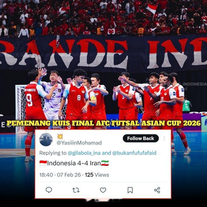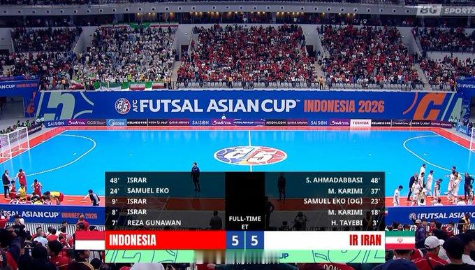 印尼是真的猛啊,踢伊朗竟然三度领先,常规时间4-4,加时赛5-5,点球大战4-5,托希尔盛赞决赛是亚洲五人制历史最佳决赛。