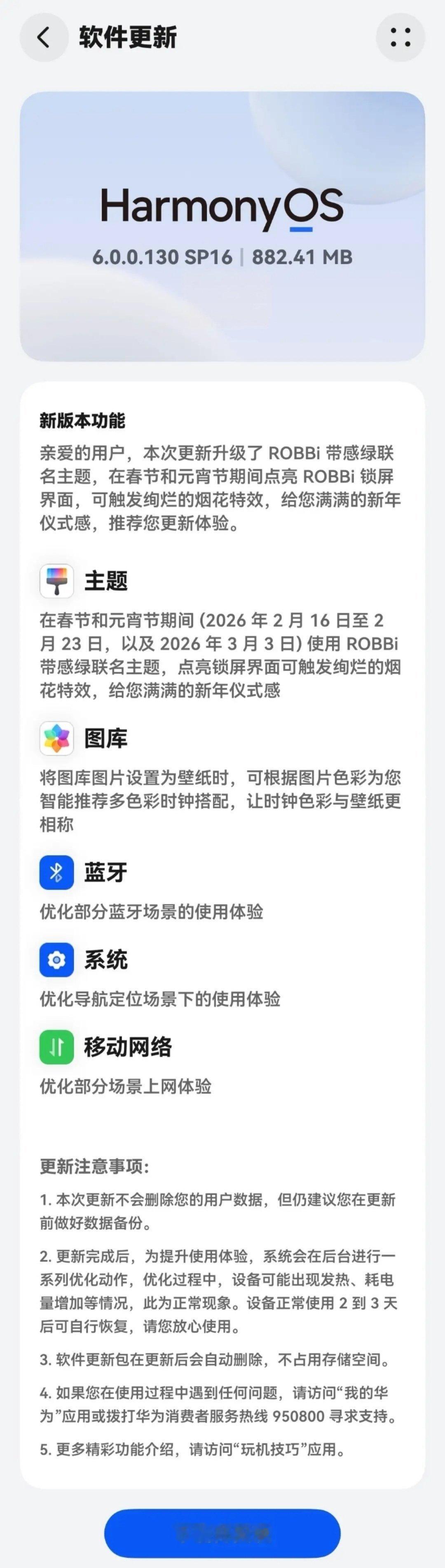 【华为nova 15系列手机获HarmonyOS 6.0.0.130 SP16更新】