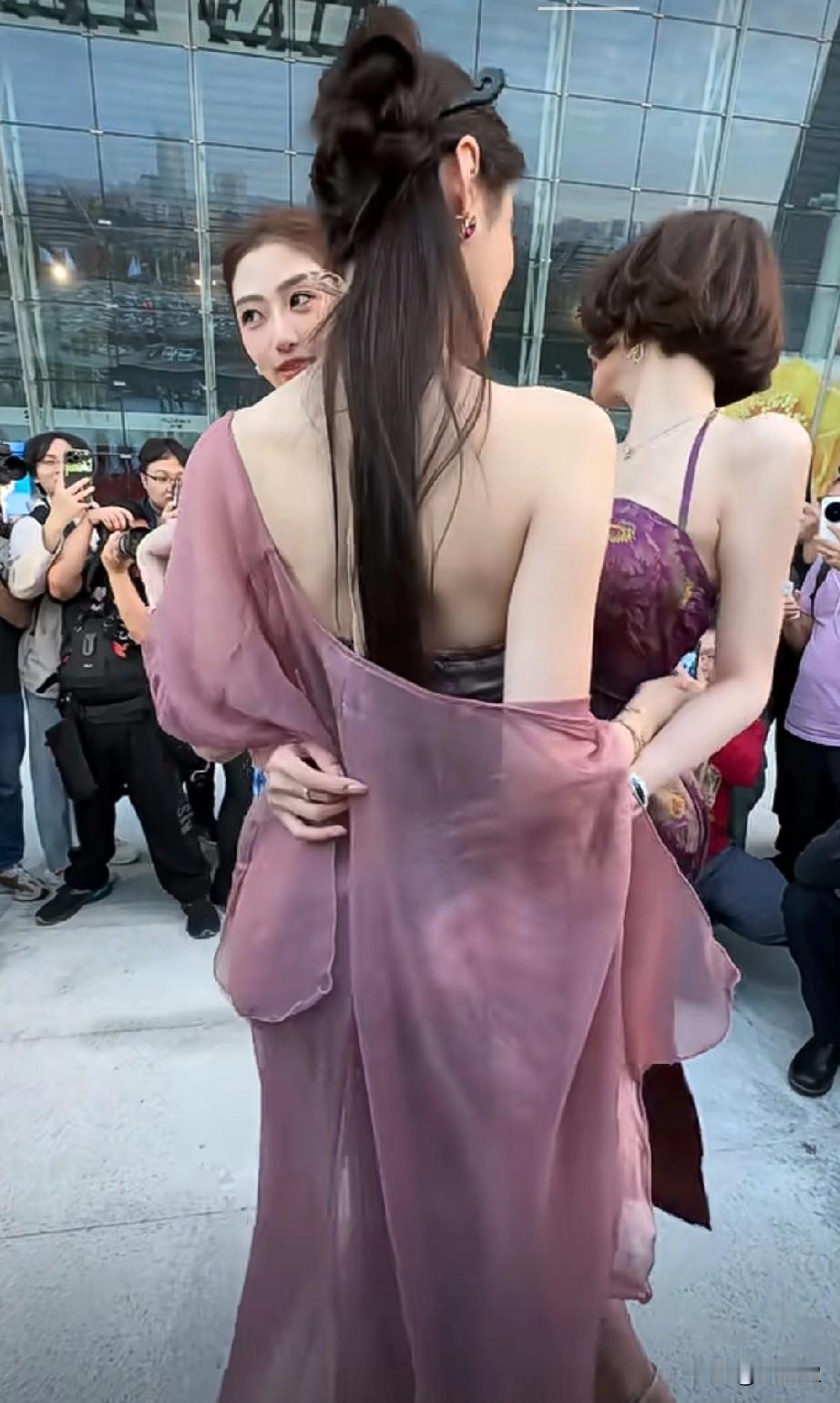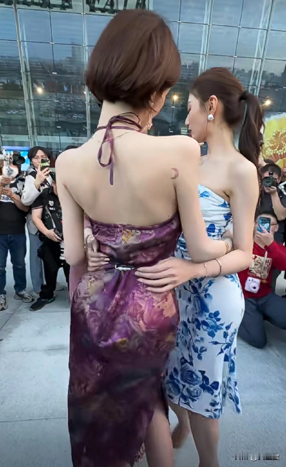 张天爱跟素人合影,胯真的好宽,大宅院似的