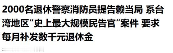 赖清德恐怕做梦都没想到,最先对他反水的,竟然是每天守在他身边、护他周全的警察。就在2月5日,黄国昌率领300多名警消,正式开启了岛内史上规模最大的团体诉讼。 2025年,台立法机构已经三读通过了“警察人员人事条例”相关修正案,简单讲就是给退休警消提高点退休金的所得替代率,说白了就是警消退休后,每个月能拿到的退休金,和他们在职时的薪资比例能高一点,毕竟干这行的不容易,风里来雨里去,还得面对各种危险。 本来修正案通过了,大家都以为能踏实领钱了,没成想赖清德当局却开始装糊涂,一味地延宕、卡关,死活不按照规定编列预算。这一下就坑惨了退休警消,每个月平白无故就少拿几千新台币,对于靠退休金过日子的人来说,这可不是一笔小数目。 可能有人不知道,警消这行在岛内算是因公伤亡比例最高的职业之一,不管是救火还是抓坏人,亦或是处理各种突发灾害,冲在最前面的永远是他们。 早在2017年,蔡英文当局搞年金改革,想削砍警消的退休金,就引发过上千名警消上街抗议,甚至有人下跪大喊“蔡英文下台”,可见警消群体的不满早就埋下了种子。 本来大家以为赖清德上台后,能改一改这种荒唐事,没成想他不仅不改,还接着延续蔡英文时期的错误政策,继续让警消吃亏,这就不能怪人家翻脸了。 而这次带头的黄国昌,也不是什么外人,他是民众党主席,本身就是法律出身,对各种法律程序门儿清。2023年他退出时代力量党,加入民众党,2025年当选民众党主席,这人向来敢闯敢干,看到赖清德当局的漏洞,立马就抓住机会,帮警消群体维权。 2月5日当天,他带着近300名退休警消,不仅举行了记者会,还直接往台北高等行政法院递了状纸,发起了团体诉讼。截止到1月23日收件结束,已经有超过2000件参与诉讼的申请,这直接成了台湾地区有史以来,人数最多、规模最大的一次“民告官”案件。 他们的诉求也很简单,就是要求台内务部门支付退休金的差额,让赖清德当局履行自己的承诺,别再装聋作哑。民众党委任的律师也说了,这次参与诉讼的人里,还有不少因公受重伤的警消,希望法官别刻意拖延,毕竟这事不仅关乎上千名警消的权益,更是赖清德执政以来的一大污点。 赖清德估计现在肠子都悔青了,他天天喊着“护台”,却连身边守护他的警消都护不住;一边标榜自己讲法治,一边又放任行政机构不执行已通过的“法规”,自己打自己的脸。 他上台以来,除了搞“绿色恐怖”、打压异己,阻挠两岸交流,好像也没干成什么正经事,如今连警消都反水了,可见他的施政有多不得人心。 其实这事说穿了也简单,警消们护的是岛内的安宁,求的也只是一份合理的待遇,可赖清德当局只顾着自己的私利,忽视他们的付出,甚至刻意损害他们的权益,反水也就成了必然。别说什么“反水”,这根本就是被逼无奈的反抗,毕竟谁也不愿意天天替一个不把自己当回事的人卖命。 赖清德恐怕到现在都没明白,失去民心从来都不是一瞬间的事,而是一次次的忽视和伤害积累起来的。连每天守在身边的警消都能对他反水,足以说明他在岛内的支持率早就岌岌可危了。 这场诉讼,不仅是警消们在争取自己的权益和尊严,更是在打赖清德的脸,让所有人都看清楚,他所谓的“执政为民”,不过是一句自欺欺人的空话。 说到底,这都是赖清德自己造的孽,放着正经事不干,一门心思搞内斗、谋私利,最后被身边人反水,纯属自找的。上千名警消的诉求很简单,就是拿到自己该得的退休金,可这么简单的要求,赖清德当局都不愿意满足,这样的执政者,又怎么可能赢得人心呢?