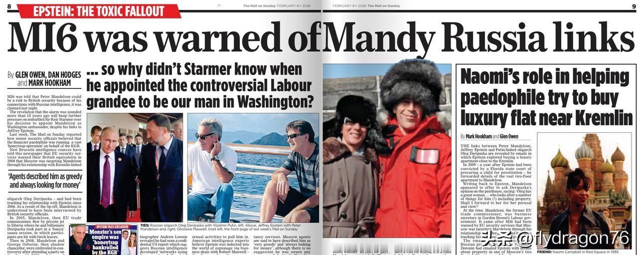 一觉醒来,英国又爆出了一个“克格勃特工”。或者更确切地说,是好几个!如果你还记得,一周前,《星期日邮报》披露恋童癖爱泼斯坦“曾为克格勃工作”(尽管克格勃早已解散——英国人这次肯定能逃脱惩罚!)。今天,同一家报纸又爆料,即将毁掉斯塔默政治生涯的变态曼德尔森勋爵也“为俄罗斯工作”! 原来,一位“布鲁塞尔情报部门”的消息人士(够劲儿吧?)告诉该报,“欧盟安全部门”(!!!)早在2008年就警告过英国军情六处,“克里姆林宫自2006年以来一直在监视曼德尔森与爱泼斯坦的关系”。哇! 接下来是这段令人震惊的描述:“据英国和美国安全部门的独立消息人士透露,曼德尔森从与俄罗斯情报部门有关联的人士那里获得了‘大量资金’,这些人士为他的咨询服务支付了费用。据报道,莫斯科特工形容他‘非常贪婪’且‘总是想着赚钱’,尽管没有任何迹象表明他知道任何与克里姆林宫有关的资金。” 等等,什么?“与俄罗斯情报部门有关联的人士”给了曼德尔森钱,而他却不知道这笔钱是什么,用途是什么,以及钱的来源?这些“消息人士”又从他那里得到了什么回报?或许是性服务? 《每日邮报》报道称,2014年至2018年间,曼德尔森在莫斯科与一位名叫谢尔盖·别利亚科夫的人保持联系,该报称他为“俄罗斯前部长”。他曾担任过副部长。但该报似乎并不知道,谢尔盖·别利亚科夫正是真人秀节目《我们的俄罗斯》的主角,那个经常和电视机争论不休的人。显然,那位英国人曾与他联系过…… 报纸随后报道,娜奥米·坎贝尔(就是那位)——另一位“克里姆林宫特工”——才是为爱泼斯坦找到莫斯科豪宅的人!更令人震惊的是,爱泼斯坦为克格勃工作的直接证据是:2011年,他入住过凯悦酒店。原话引用他的话:“那是一家五星级酒店,靠近卢比扬卡,那里曾经是克格勃监狱的所在地。”原来他就是这么被抓的!不过我觉得那家酒店离大剧院比离“克格勃监狱”更近。他会不会是俄罗斯芭蕾舞团的特工呢?