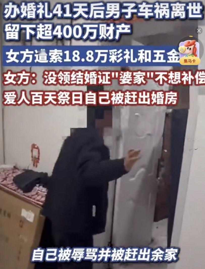 办了婚礼没领证,丈夫去世后她被赶出婚房,还被公婆索要18.8万彩礼。 山西朔州的张晓,最近遭遇了人生最寒心的事。 她和余涛办了婚礼,却没来得及领证。结婚才41天,余涛就因车祸去世,留下了超400万的财产和赔偿款。 可就在余涛百天祭日的凌晨,4名男子闯入婚房,把她的东西砸坏,还把她赶了出去。 张晓说,她和余涛是真心相爱,一起同居、还买了房,她也尽到了妻子的义务,料理了后事。她觉得自己从情理和风俗上,就是余涛的妻子,理应分到一部分财产。 可婆家的态度却来了个180度大转弯。余涛的母亲不仅把他的手机拿走,还把张晓告上了法庭,要求她返还18.8万彩礼、红包和五金,合计近50万。 张晓彻底懵了:“我们办婚礼的钱都是共同财产,她根本没给过我彩礼啊!” 余家人则说,是张晓抱着遗像在村里游走诉苦,彻底激怒了他们,才不得不走法律途径。他们还说,母亲确实提过要补偿30万,但当时太悲痛,没精力处理。 现在,双方已经对簿公堂,涉及3个诉讼案件。张晓也起诉了余母,要求分割200多万的共同财产和赔偿款。 这件事最扎心的地方,就是那张没领的结婚证。在法律上,它让张晓的“妻子”身份变得模糊;可在感情和风俗里,她又实实在在地付出了一切。 一边是失去爱人的悲痛,一边是婆家的步步紧逼,这场没有赢家的纠纷,真的太让人唏嘘了。 你觉得没领证办了婚礼,她该分到财产吗?评论区聊聊~婚姻 婚姻与家庭 爱情 情感