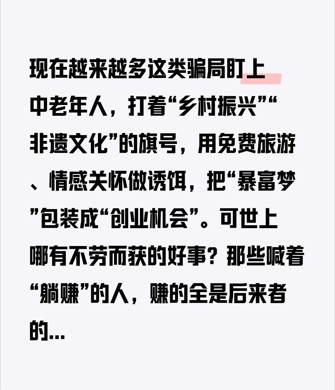 50天赚10万买奔驰?黑茶骗局被曝光!豪车是租的,现金是道具,已有老人血本无归 家人们警惕了!“喝黑茶50天赚10万,半年提奔驰”——这听起来天上掉馅饼的好事,其实是把人往火坑里推的传销骗局!记者卧底两个月实拍揭秘,那些晒豪车、摔现金的“成功导师”,背后全是精心设计的套路,已有无数中老年人投光养老钱,堆在家里的黑茶几辈子都喝不完! 这骗局的洗脑套路,简直比电视剧还魔幻!湖南安化的黑茶产业园里,每天四五千辆大巴车拉着全国各地的人赶来“考察”,会场里人山人海,聚光灯下的“五星代理商”高举奔驰车钥匙喊:“我就用了1个月20天,净赚10万提车!” 旁边助理捧着装满现金的透明箱子,一沓沓往台上摔,台下观众尖叫着掏出手机转账,生怕错过“暴富机会”。 55岁的离异大姐陈玉,就是被这场景冲昏了头。儿子车祸急需用钱时,她被网友以“垫钱冲五星、年入百万就结婚”的承诺哄骗,21天内投了8.4万,最后只收到32箱堆成山的黑茶,别说赚钱,连本金都要不回。74岁的张大爷更惨,把2.1万养老钱全投进去,最后被踢出群聊,连人都找不到。 本以为只是普通传销,没想到第一个转折点来了——记者卧底发现,这些“成功证据”全是造假!门口的奔驰、宝马都是每天500元租来的,车身上“黑茶创业提车”的标语一撕,转头就去下一场骗局撑场面;台上摔的现金是重复使用的道具,散场后立刻回收,甚至有“导师”当场扔钻戒,其实是几十块的假货。而所谓“2.8万买100斤茶”,成本才几十块的黑茶,溢价全用来支付层级返利,茶叶本身根本没人买,只是传销的“遮羞布”。 更黑心的是第二个转折点:骗局不仅骗钱,还搞情感操控和人身控制!参与者被拉到安化基地后,身份证被收、手机信号被屏蔽,完全与外界隔绝。组织者把新加入的1-3个月叫“疯狗期”,怂恿大家“离婚也得干,家里杀人也得干”,还挑拨家庭关系,说“10个代理9个离婚,这种老公没用”。有代理商为了保级,甚至贷款60万,还默许性交易诱骗客户购茶,彻底沦为骗局的帮凶。 其实这就是典型的传销陷阱,完全符合《禁止传销条例》的三大特征:交2.8万入门费获得代理资格,发展下线形成五级层级,收益全靠拉人头抽成,从“一星”到“五星”提成3%到11%,和茶叶销售半毛钱关系都没有。更讽刺的是,涉事企业有正规生产资质,地方监管一度以“资质齐全”为由敷衍举报,直到记者曝光后,都昌县才发布风险提示,明确其“无直销资质,涉嫌传销”。 现在越来越多这类骗局盯上中老年人,打着“乡村振兴”“非遗文化”的旗号,用免费旅游、情感关怀做诱饵,把“暴富梦”包装成“创业机会”。可世上哪有不劳而获的好事?那些喊着“躺赚”的人,赚的全是后来者的血汗钱,等金字塔崩塌,最后只会是无数家庭血本无归、亲友反目。 教大家三个识别技巧,遇到直接拉黑:① 让你先交钱买产品才能“赚钱”;② 收益靠拉人头、发展下线拿提成;③ 封闭洗脑、炫富造势、承诺“零风险稳赚”。如果发现疑似骗局,保存好录音、转账记录,立刻打110或12315举报。 普通人的钱都是辛苦赚来的,养老钱、救命钱更是输不起。别被“50天赚10万”的口号冲昏头,踏实干活才是真,任何要你拉亲友赚钱的“生意”,大概率都是骗局!你身边有人遇到过黑茶骗局吗?欢迎在评论区曝光,也转发给家人朋友,一起避坑!