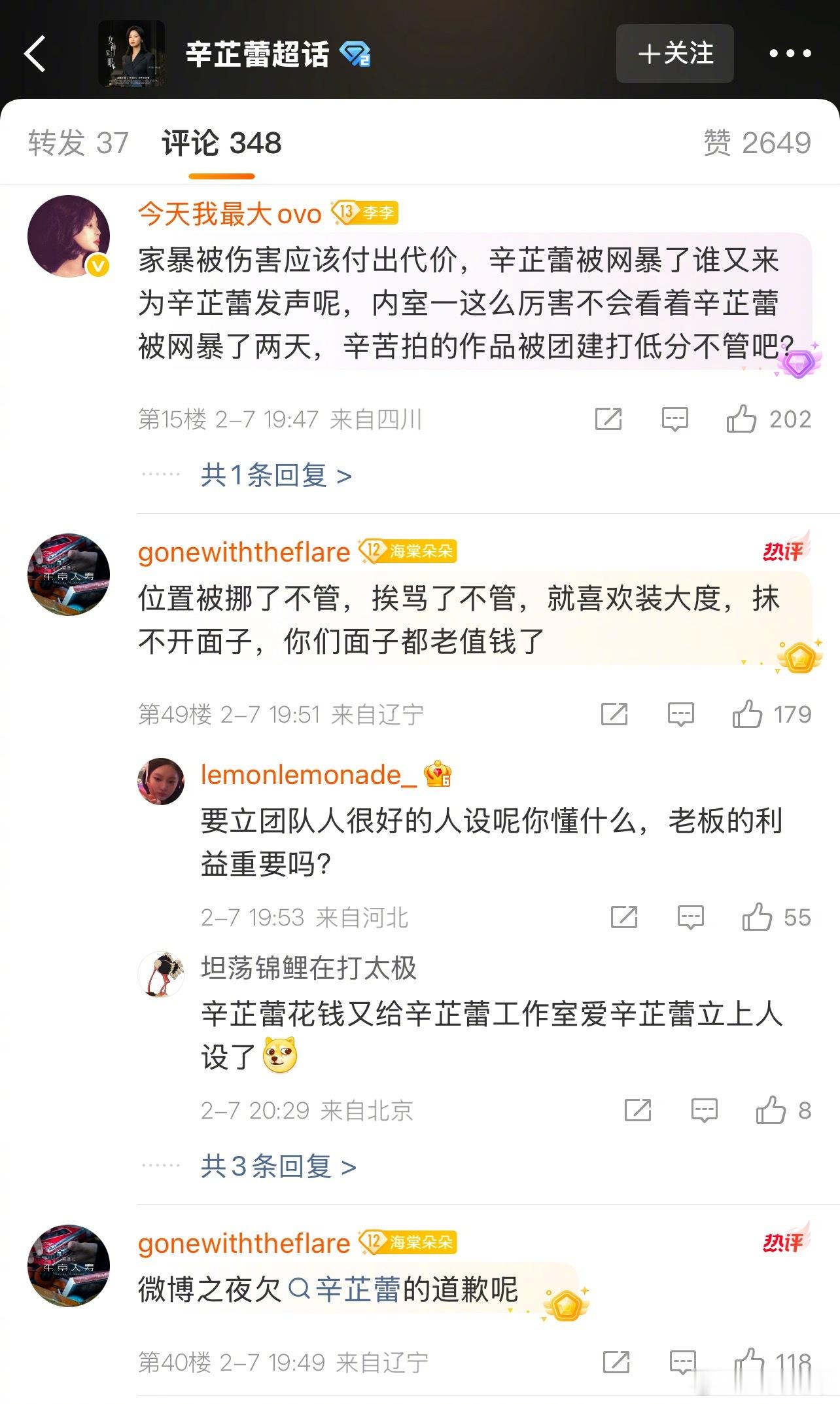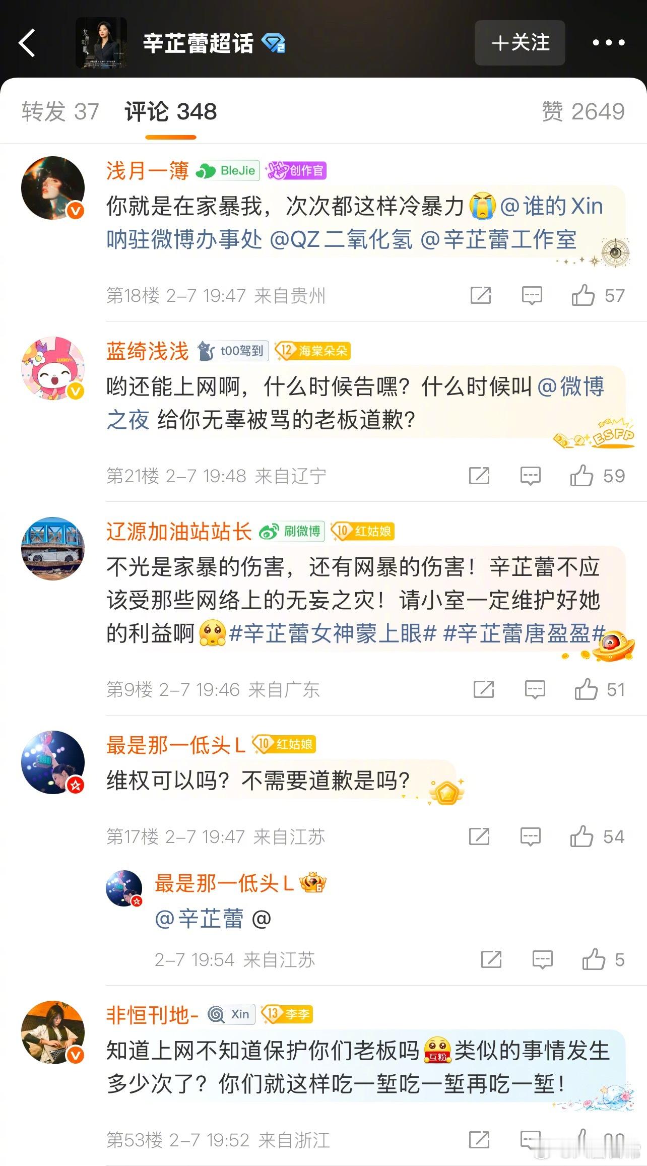 辛芷蕾工作室评论区都是粉丝在要求工作室维权