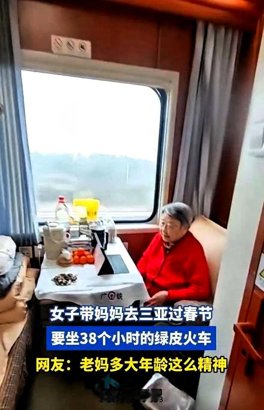 河南一个女儿,带妈妈去三亚过年,订了两张38个小时的绿皮火车票。 不少网友替老人感到辛苦,认为春运期间路途遥远,选择慢车是“折腾”,不如坐飞机高效省心,评论区一度充满对“方式不当”的讨论。 但随着女儿分享的视频曝光,舆论很快反转。镜头里并非大家想象的硬座车厢,而是一间整洁的软卧包间:母亲盖着毯子靠在沙发上看平板,小桌上摆着水果和热茶,独立卫生间干净便捷,整个空间安静又舒适。 火车匀速前行,母亲不时望向窗外,从北方的冬日景象到沿途渐绿的风光,一路景色慢慢变换,节奏舒缓。面对女儿的询问,老人笑着说“舒服着呢”,神情放松自然。 其实,争议的核心在于大家对“孝顺”的理解不同。很多人默认“快”就是对老人好,却忽略了不同年龄的需求差异。对年轻人来说,3小时飞机是效率;但对老人而言,软卧的平稳、女儿的全程陪伴,以及慢慢看风景的从容,可能更符合他们的节奏。飞机上空间狭小、流程紧凑,反而容易让人疲惫,而慢车的“慢”,恰好给了母女俩独处聊天的时间。 这件事也提醒我们,孝顺从来没有统一标准,不是用价格或速度衡量,而是看是否贴合对方的感受。女儿没有盲目追求“最优解”,而是选择了母亲能适应的方式,这份用心比形式更重要。生活里的孝心,往往就藏在这些尊重对方节奏的细节里。