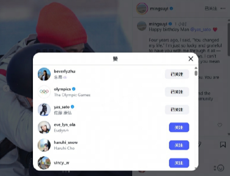 苏翊鸣社媒发文为教练佐藤康弘庆生,朱易、佐藤教练、以及奥运官方账号均为此点赞。