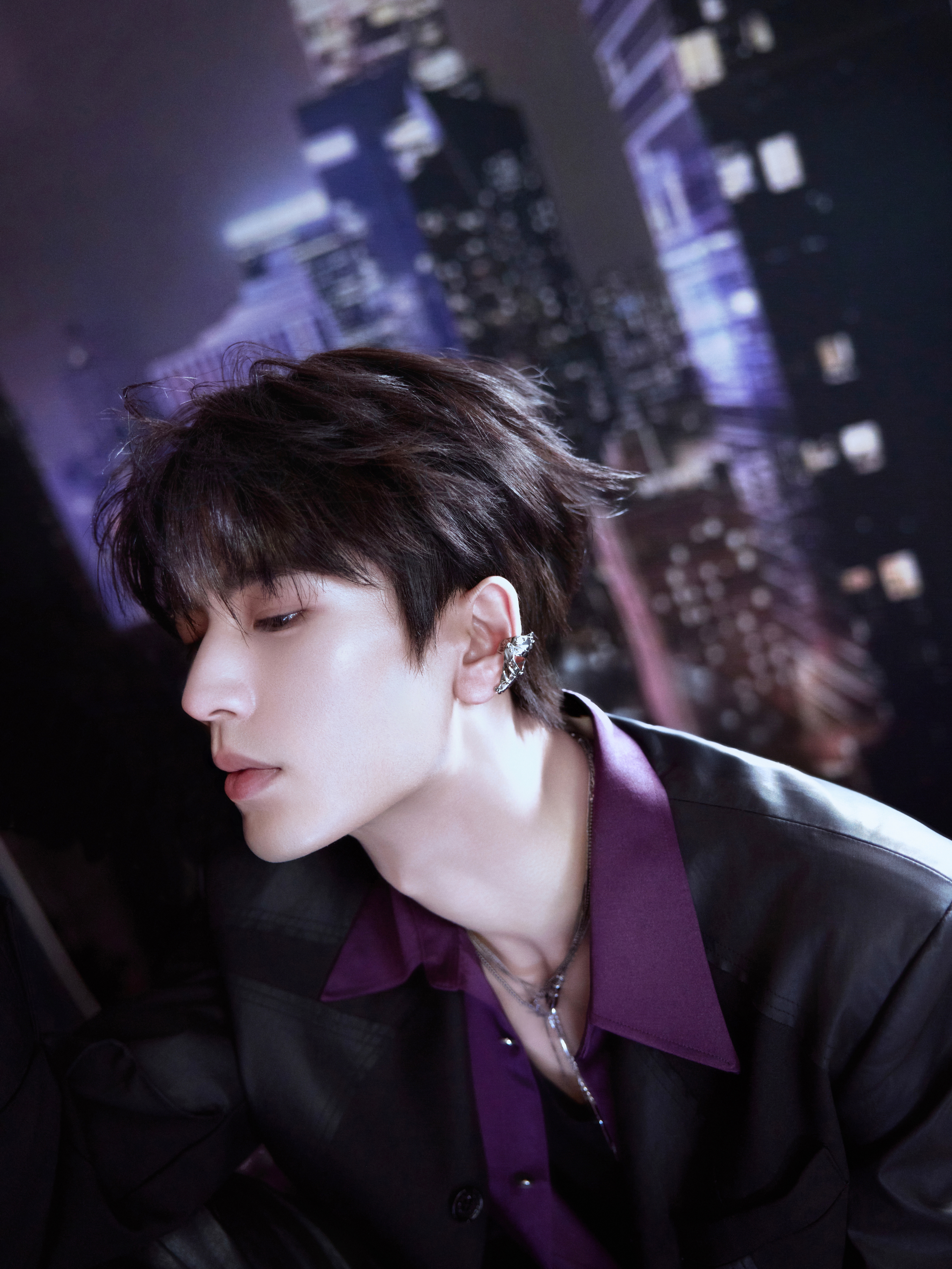 张凌赫今日亮相游戏直播活动,一身皮革拼接LOOK内搭紫色衬衫,眉钉与金属耳饰点缀细节,清冽中带着几分不羁,电竞男主具象化,冷感又迷人~💜🖤