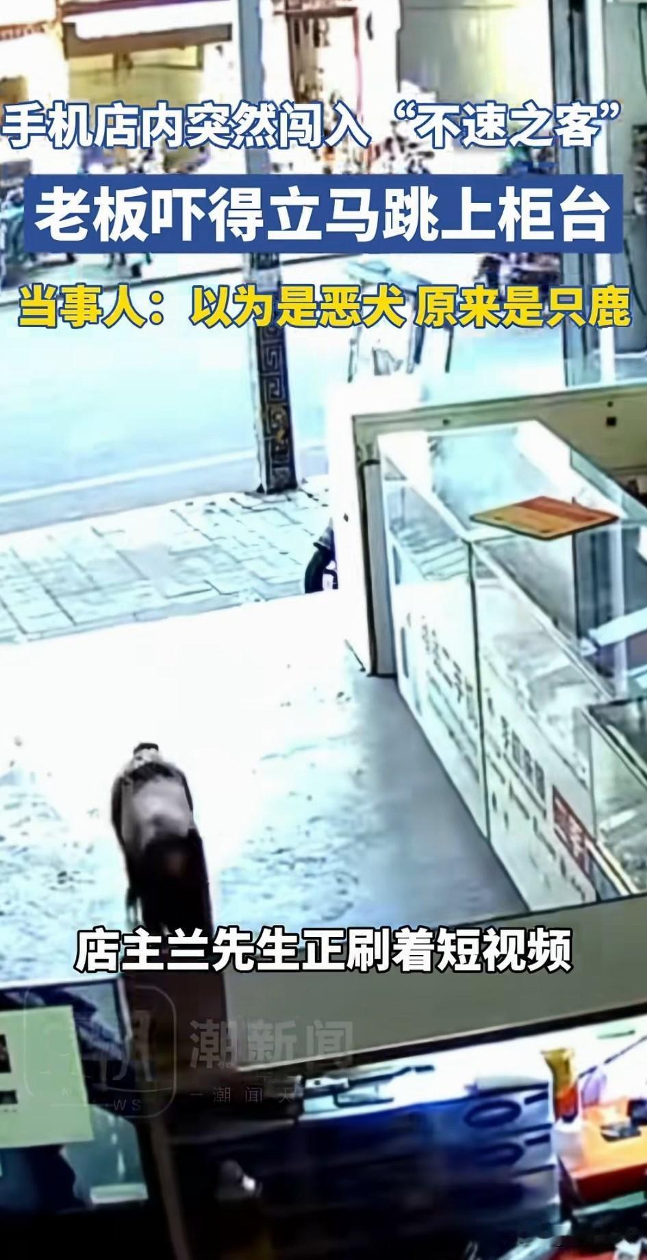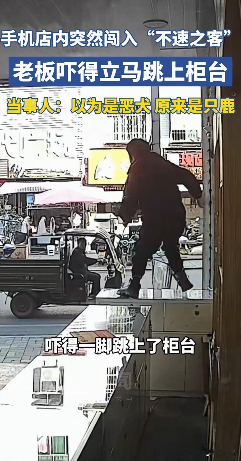四川大凉山的兰先生居然被鹿给攻击了,他坐在自己的手机店里刷短视频, 正看热舞起劲呢! 突然一个庞大的身影出现在了他的面前,迅速越过了他的收银台, 可把他给吓了一跳, 他毫不犹豫的跳上了柜台, 以为是一只恶犬袭击, 结果定情一看,发现是一只鹿, 他跳上柜台的举动, 还吸引了过路的大爷, 监控把他狼狈的举动都拍了下来, 这实在是太搞笑了, 这就是人应激反应下的真实状态, 由于太过紧张鹿和狗都不分了, 随后这鹿在他的手机店里横冲直撞, 为了避免造成重大损失, 他不得不打给了森林公安, 很快叔叔赶到江都给带走了, 他把这好玩的一幕放上了网络, 迅速引起了大家的好奇! 真是人在家中坐,祸从天上来! 大凉山真够神奇的, 街上都能看到野生的鹿! 大家对于大凉山兰先生被鹿攻击吓得跳上柜台这事怎么看?