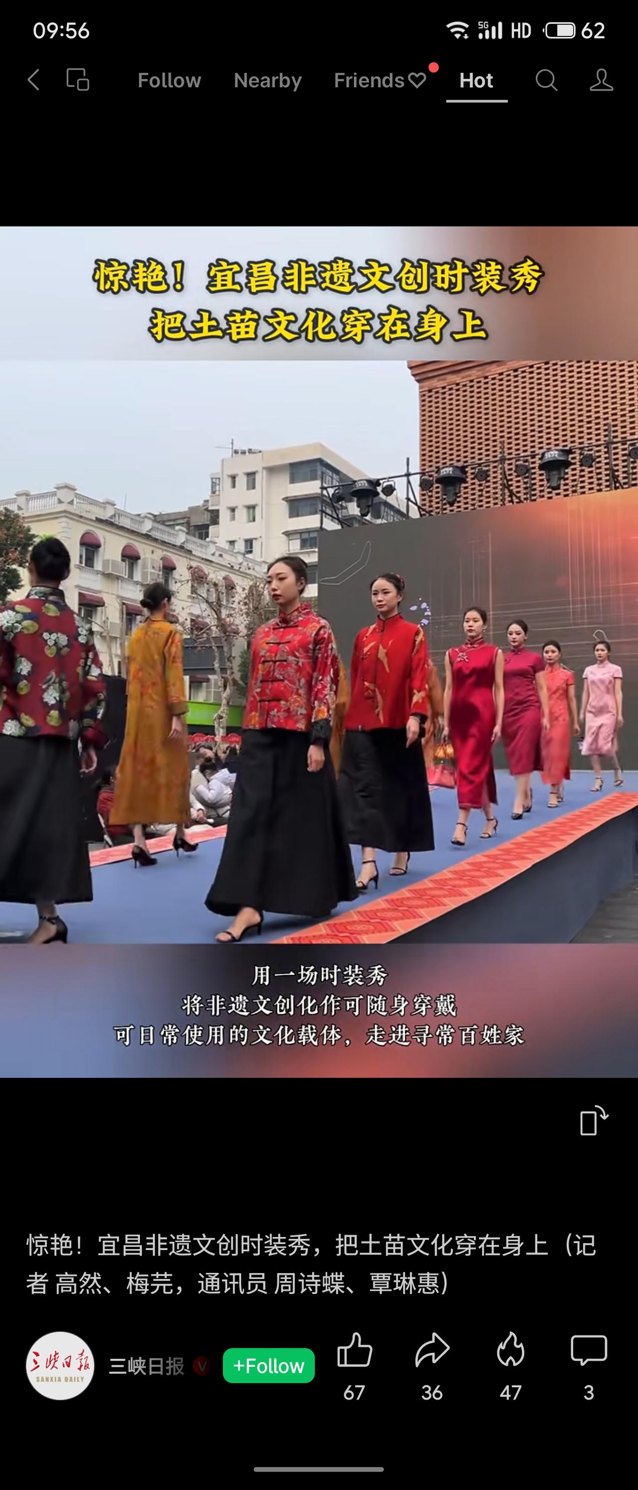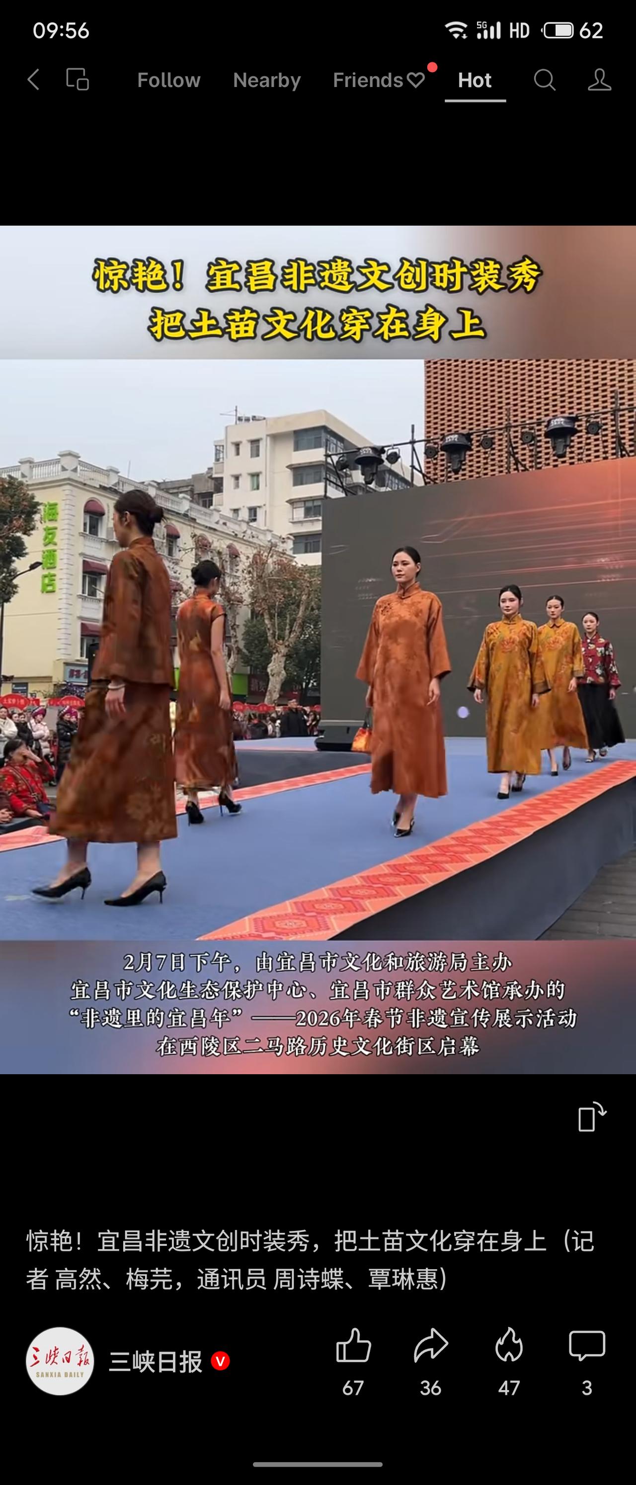 宜昌市举办非遗文创时装秀,将土家族苗族文化元素融入丝巾、发饰等12类日常用品,以“武陵·寻踪”等系列展现。此举创新了非遗保护与传承形式,让传统文化通过时尚载体走进现代生活,增强了文化活力与公众亲近感。